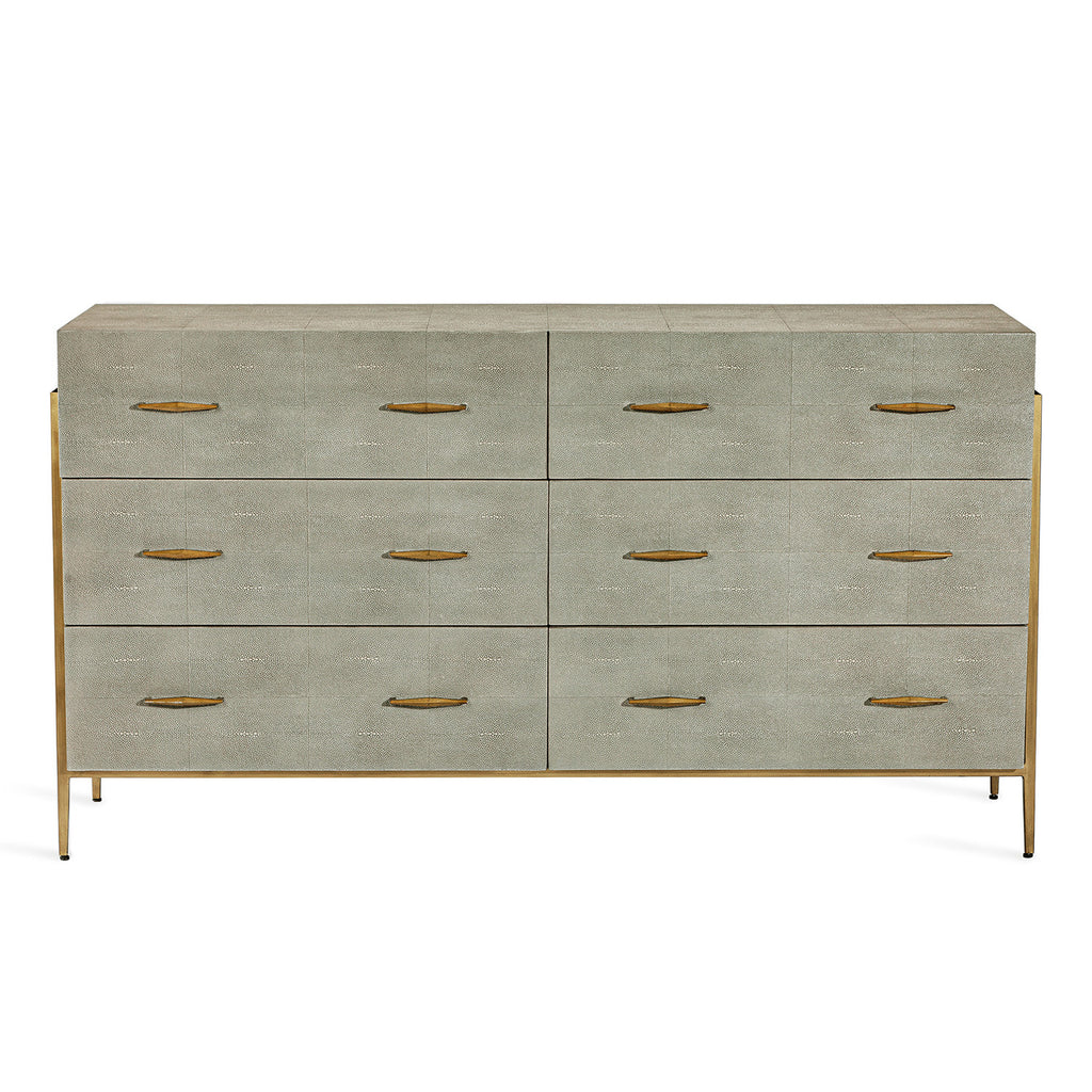 Interlude Home's worldly style brings what's now and next to the home with high fashion designed for everyday function. Featuring sorrel sharkskin faux shagreen and antique brass-finished metal hardware, the Interlude Home Morand 6-Drawer Chest makes a luxurious, classic statement.