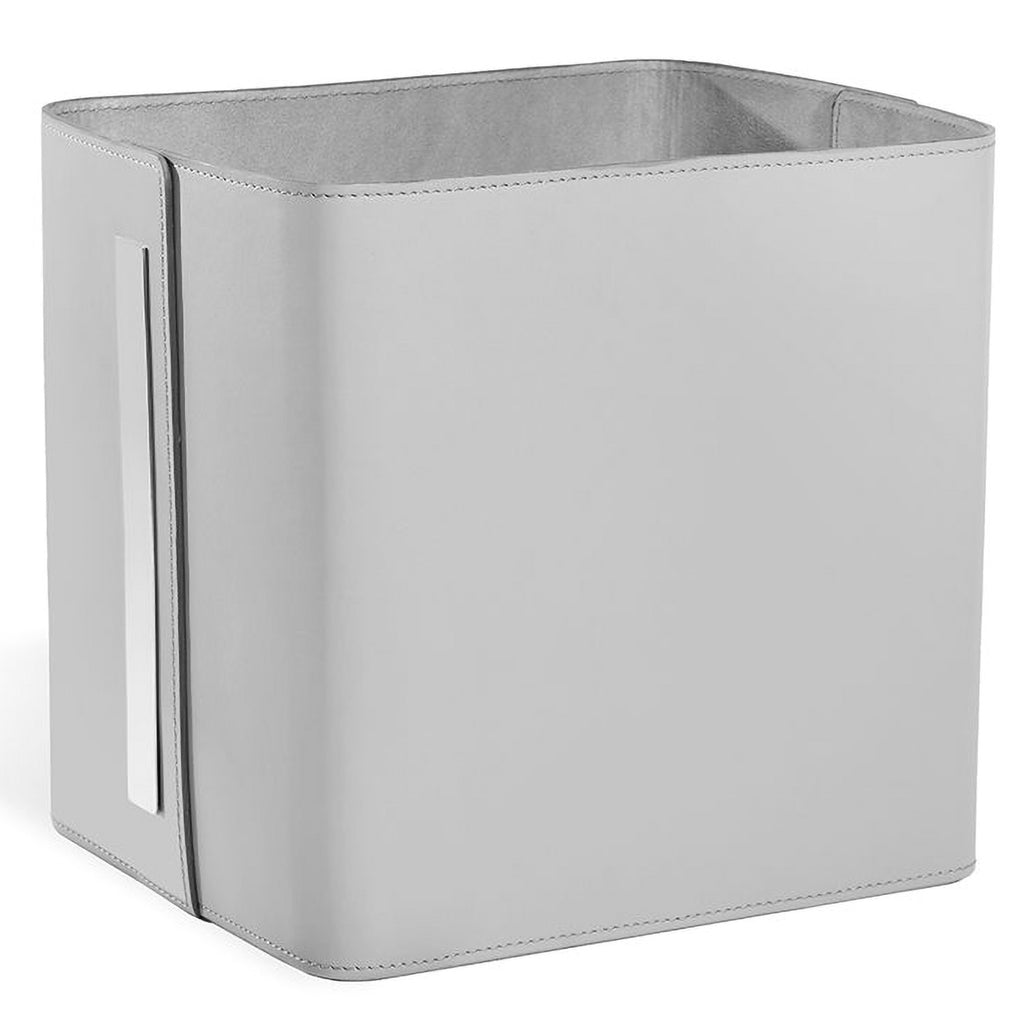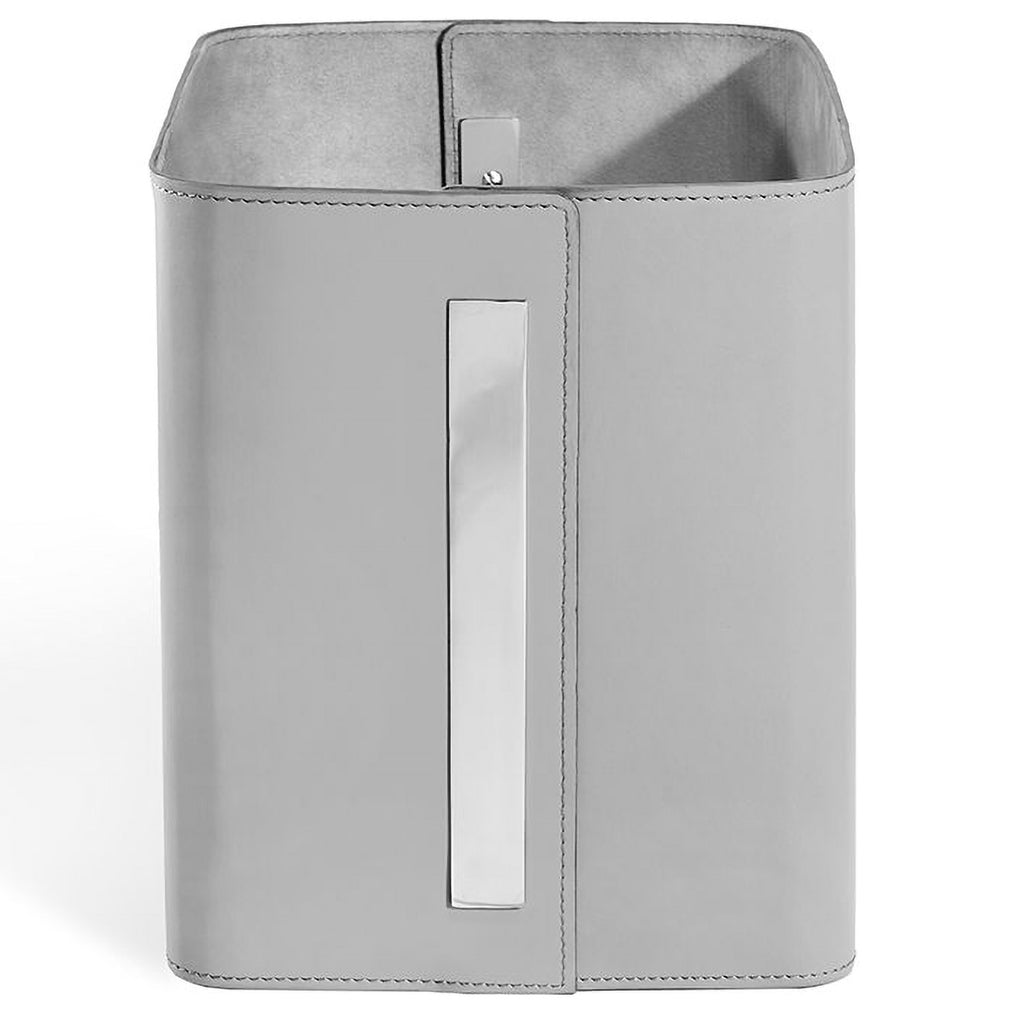 With its stunning leather and polished metal accents, the Portia Storage Basket makes for a versatile vessel used as a wastebasket or chic storage. Genuine leather is a natural material. Variations in coloration and pattern are to be expected and add to the uniqueness and charm of each piece.