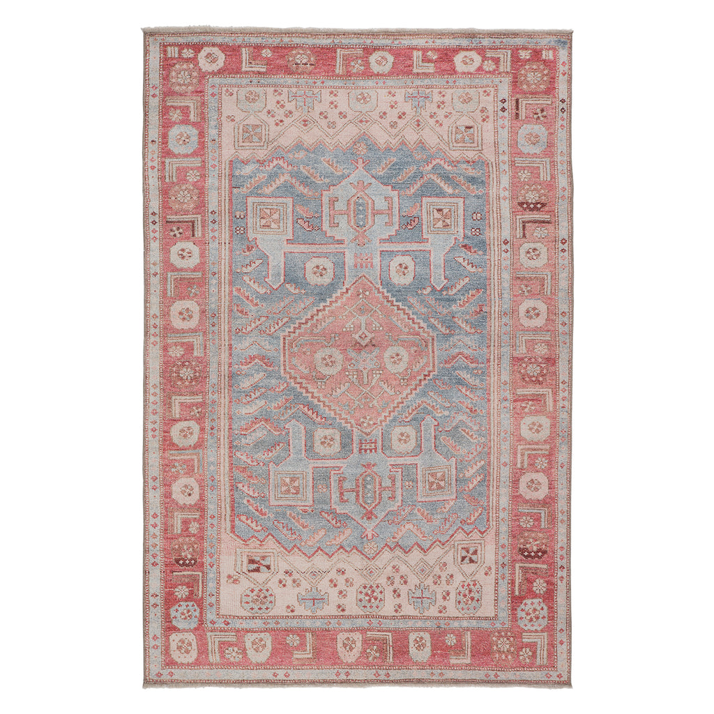 The Jaipur Boheme collection brings vintage inspiration to life with ornate, worldly designs and a timeless distress effect. The Fiddler rug showcases a unique Anatolian design in a contemporary pink and sky blue colorway. This zero-pile rug is made of cotton, polyester, and soft chenille for a flat, durable finish.