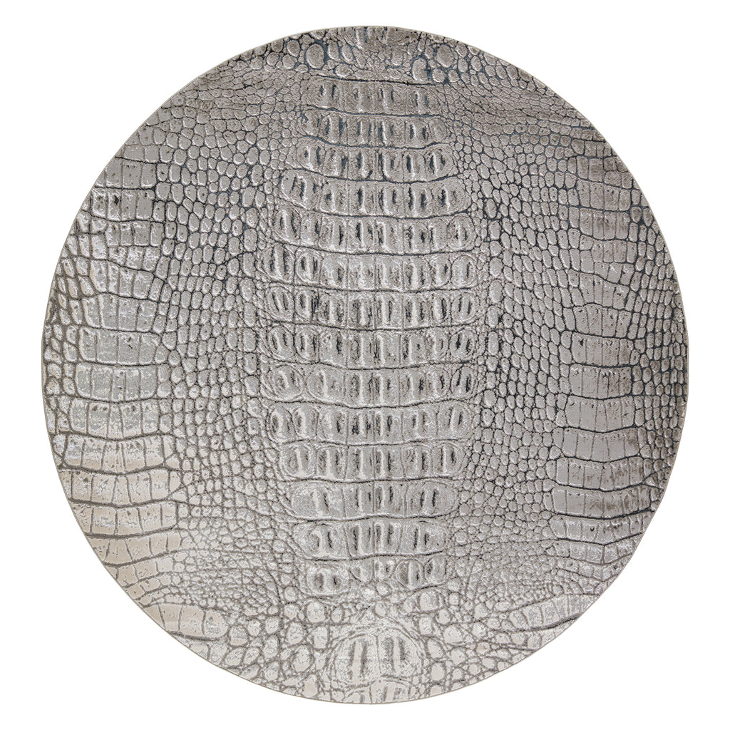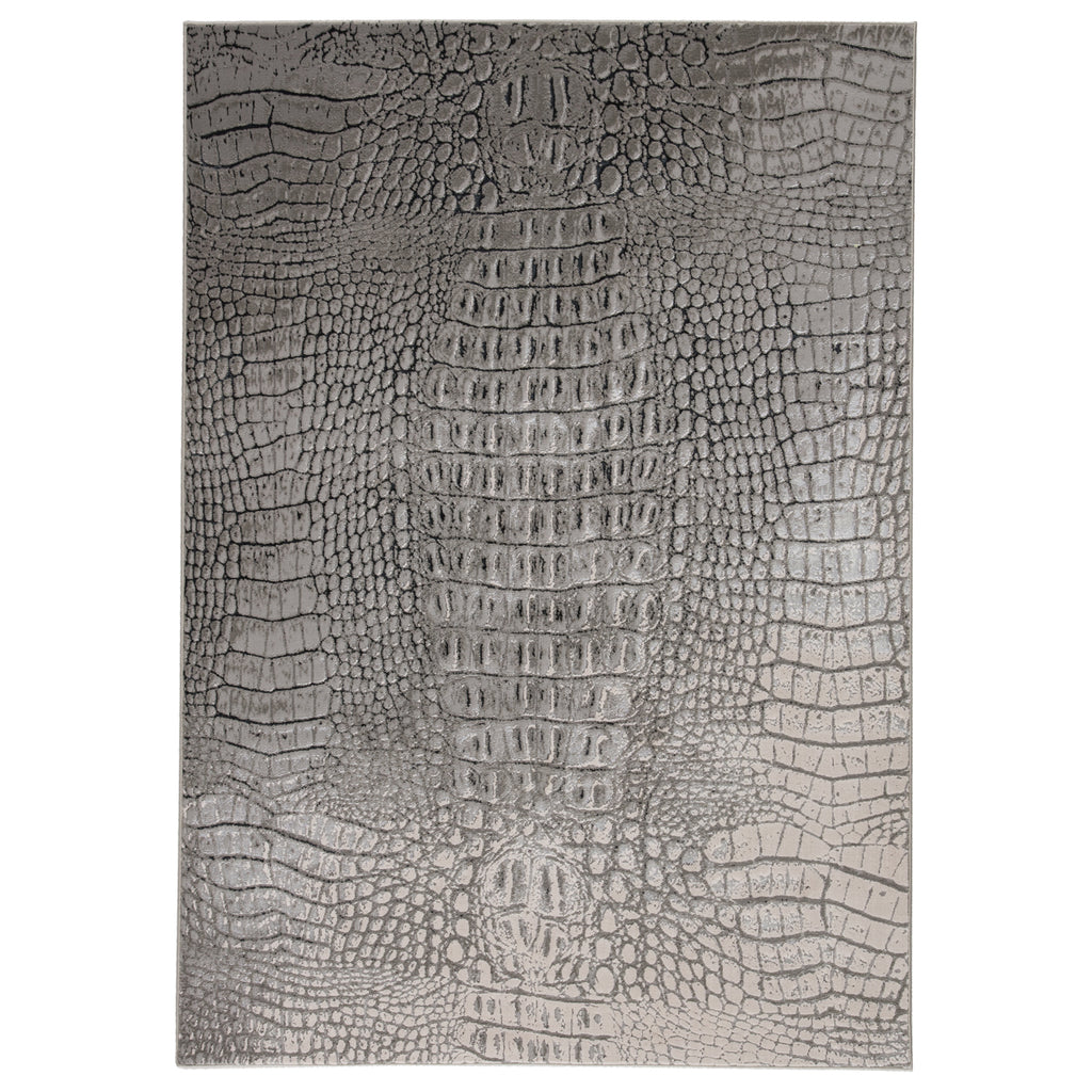 The show-stopping yet surprisingly versatile appeal of the Jaipur Catalyst collection brings contemporary edge to any home. The sleek and stunningly eclectic Canberra rug boasts a beige, silver, and gray reptilian motif that lends the perfect touch of exotic style to on-trend spaces. This wildly textured power-loomed rug features metallic polyester fibers blended with stain-resistant polypropylene for a brilliant sheen from various perspectives.