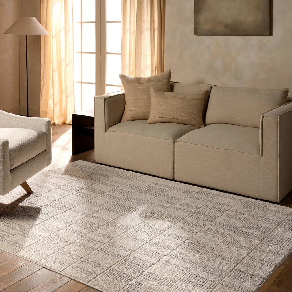 The epitome of versatility. Assurance's neutral gray hues and understated modern lines seamlessly harmonize with any design aesthetic. It is powerloomed with a plush, high-low pile and velvety hand that soften high-traffic floors.