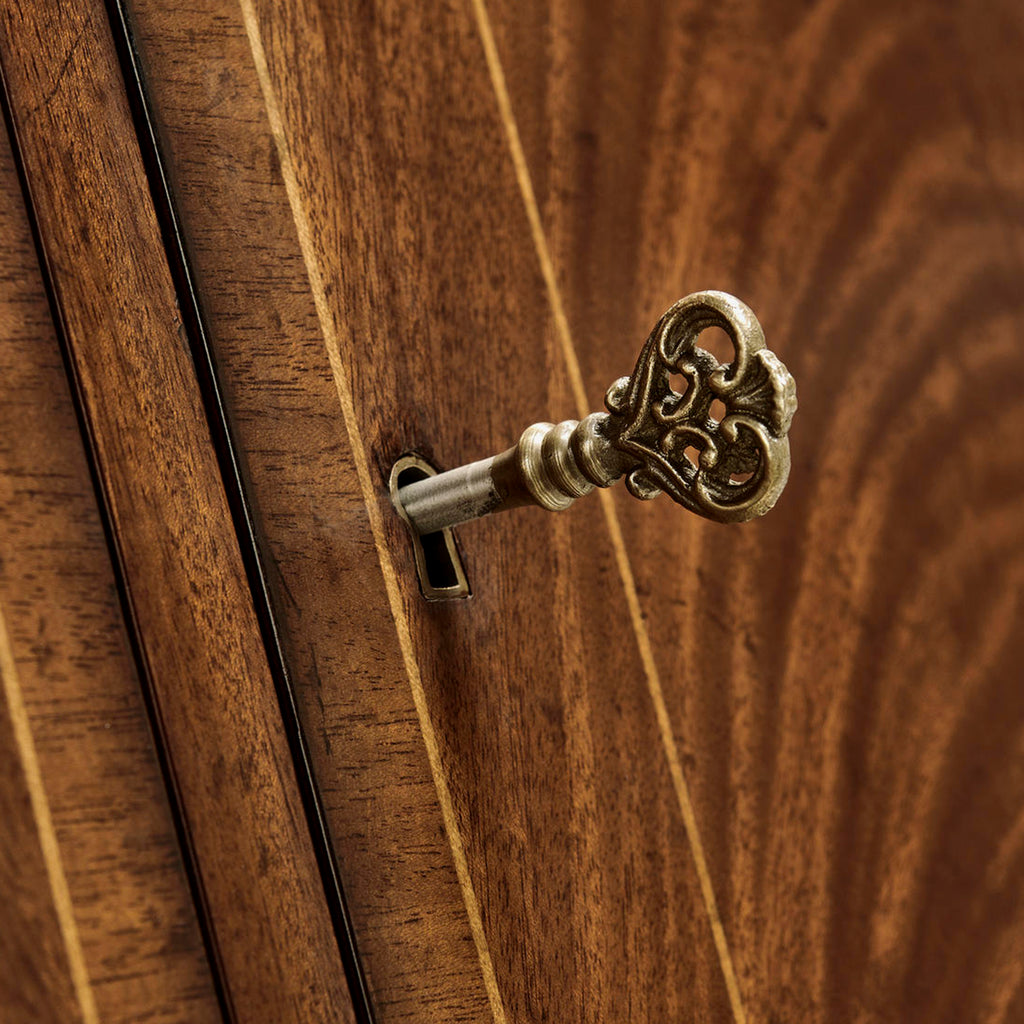 • Four (4) doors feature flame mahogany veneers and three (3) adjustable shelves behind