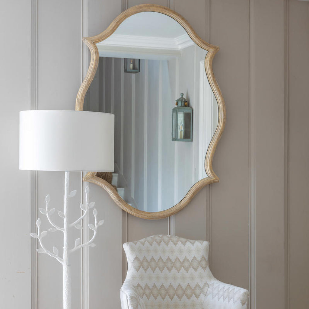 Add a touch of whimsy and elegance to your space with the Downton Mirror. This distinctive piece features a Venetian White Oak frame, beautifully contrasted with delicate Antique Gold Leaf accents that add a luxurious and timeless appeal. The mirror’s unique and playful shape brings an element of fun, making it an eye-catching focal point for any room.