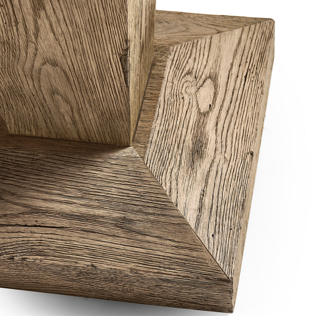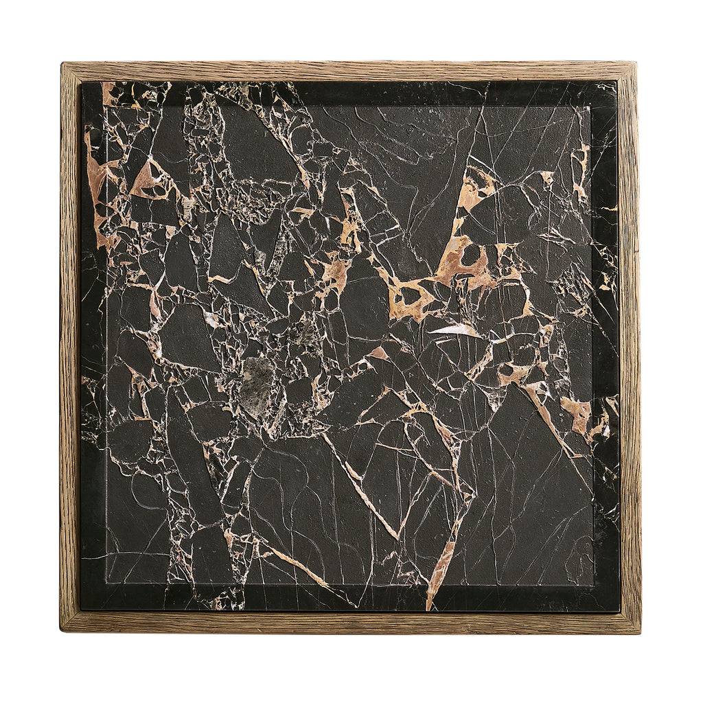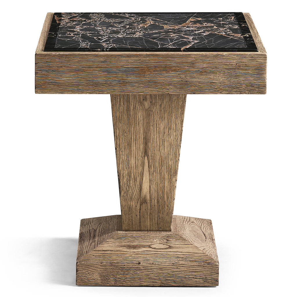 The Echo Canyon Square End Table features a beautifully crafted pedestal base in a faded oak frame, which adds warmth and texture to the home. Its standout feature is a marble top made with a unique in-house technique, offering a dimensional stone surface that enhances the table's refined, natural aesthetic.