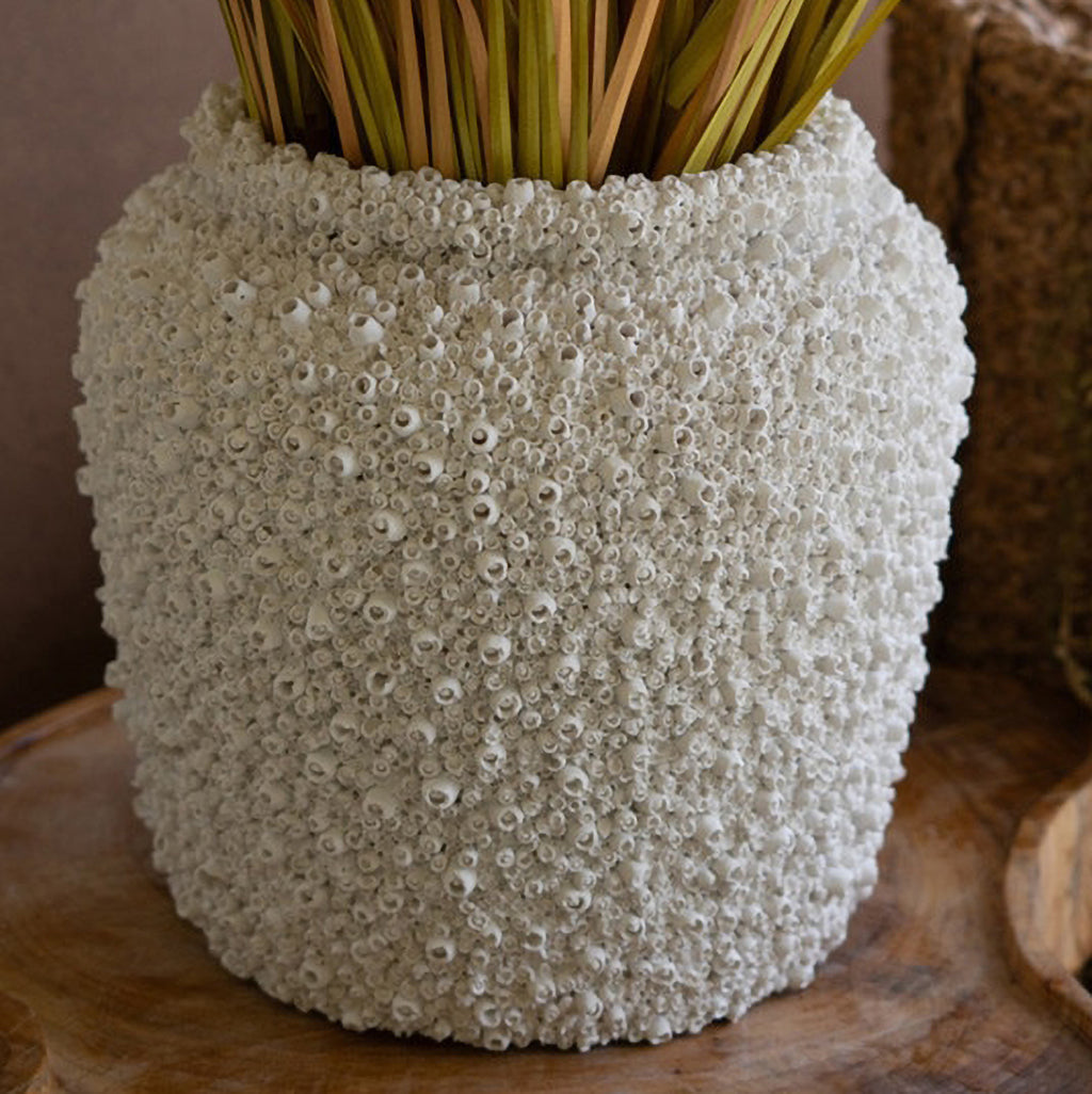 Need to brighten an empty corner? Grab this heavily textured barnacle pot for your seaside space. It measures 11in tall and has rubber feet.