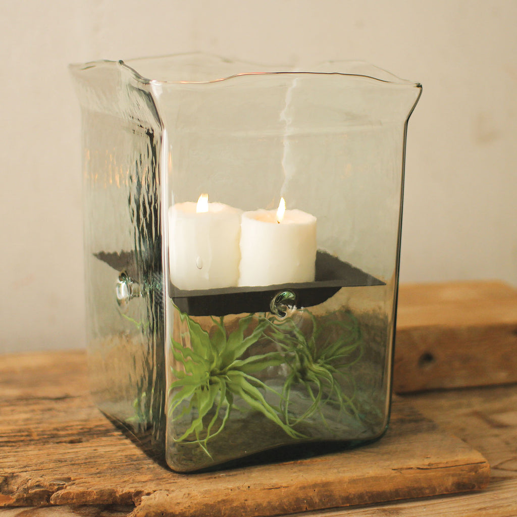 The square version of our glass candle cylinder has a contemporary feel while keeping the charm of our original.