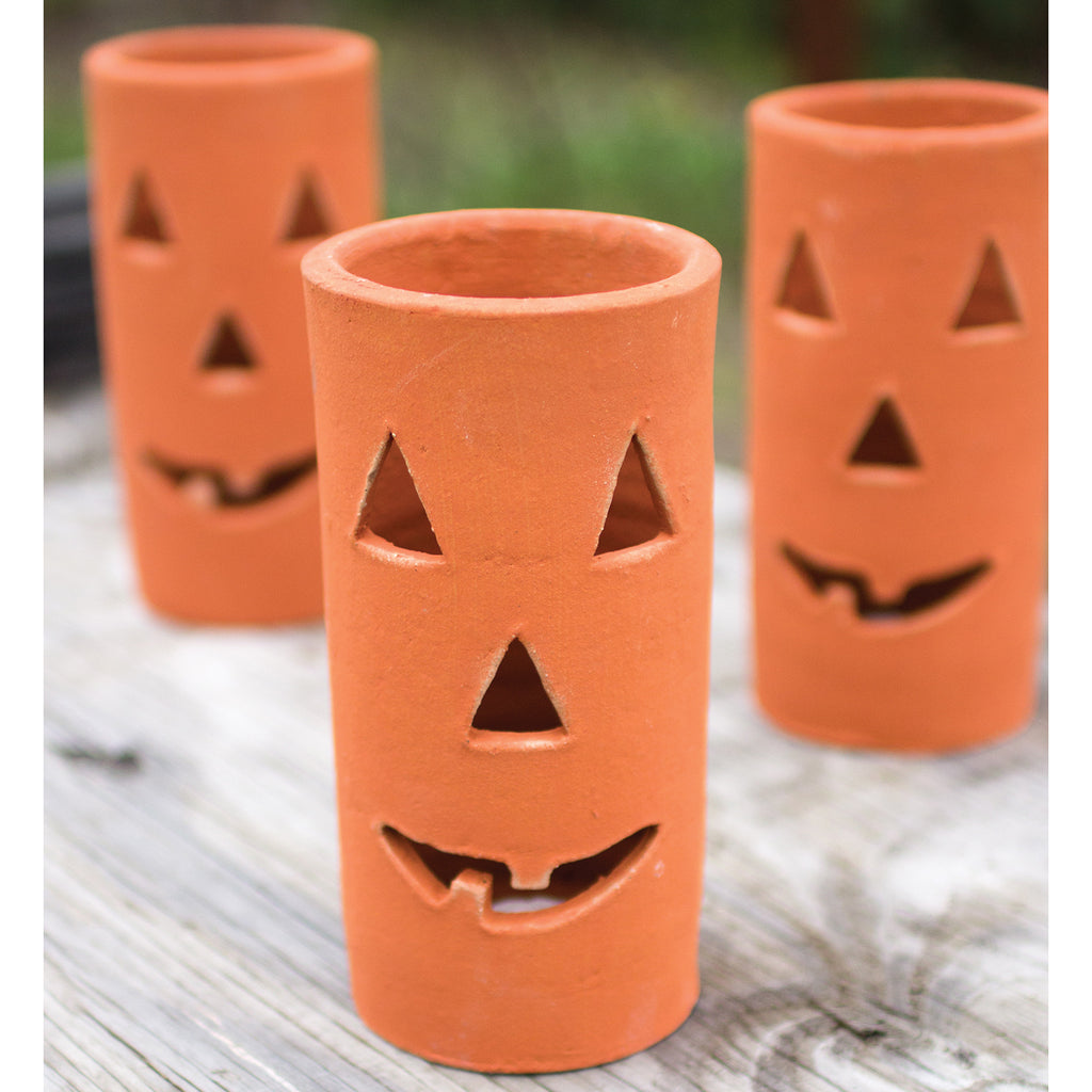 Jack-O-Lantern Terracotta Hurricane Set of 6