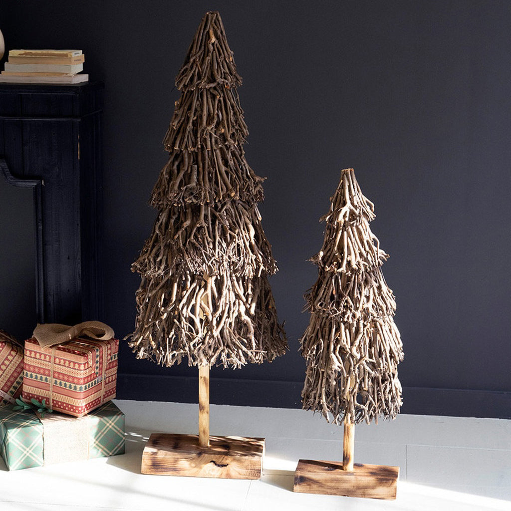 Go natural this Christmas with Paulownia branch Christmas trees. This set of two tabletop tree go with a neutral theme or stand out against the bright lights. Gift them or keep them for yourself.