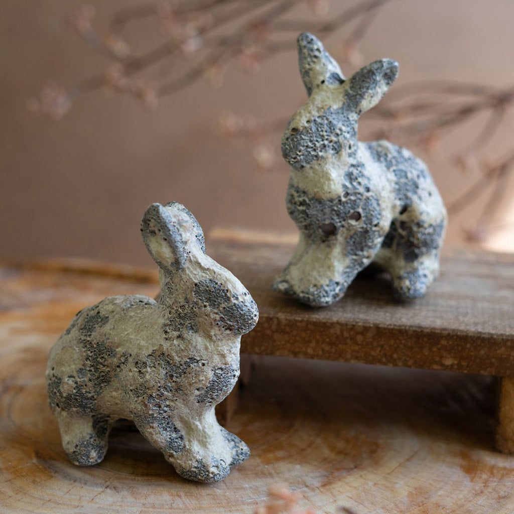 These rustic rabbits are made of distressed ceramic. The set of two bunnies makes a great gift, split or as a set. Put them in your garden area or enjoy them on a shelf.