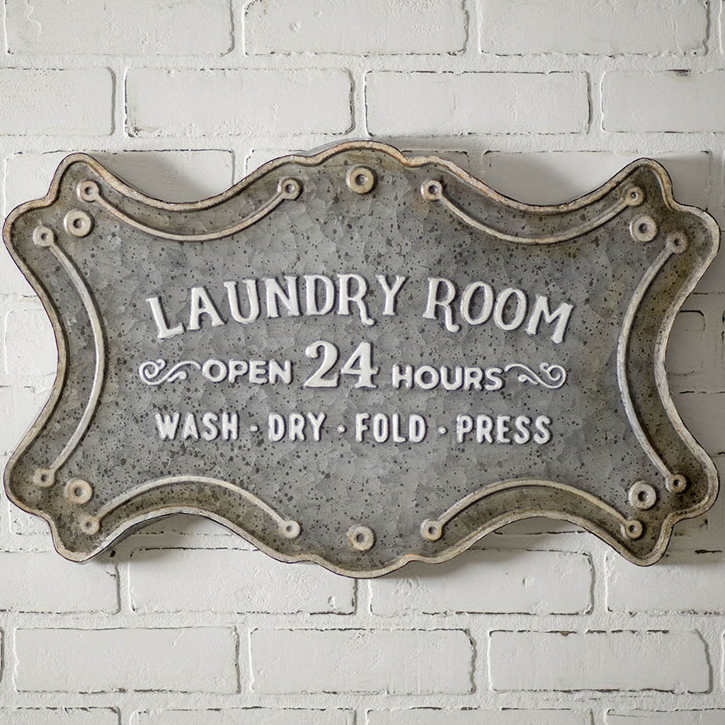 The laundry never really ever stops. And, this is the sign to let it be known. Mounts on keyhole hangers.