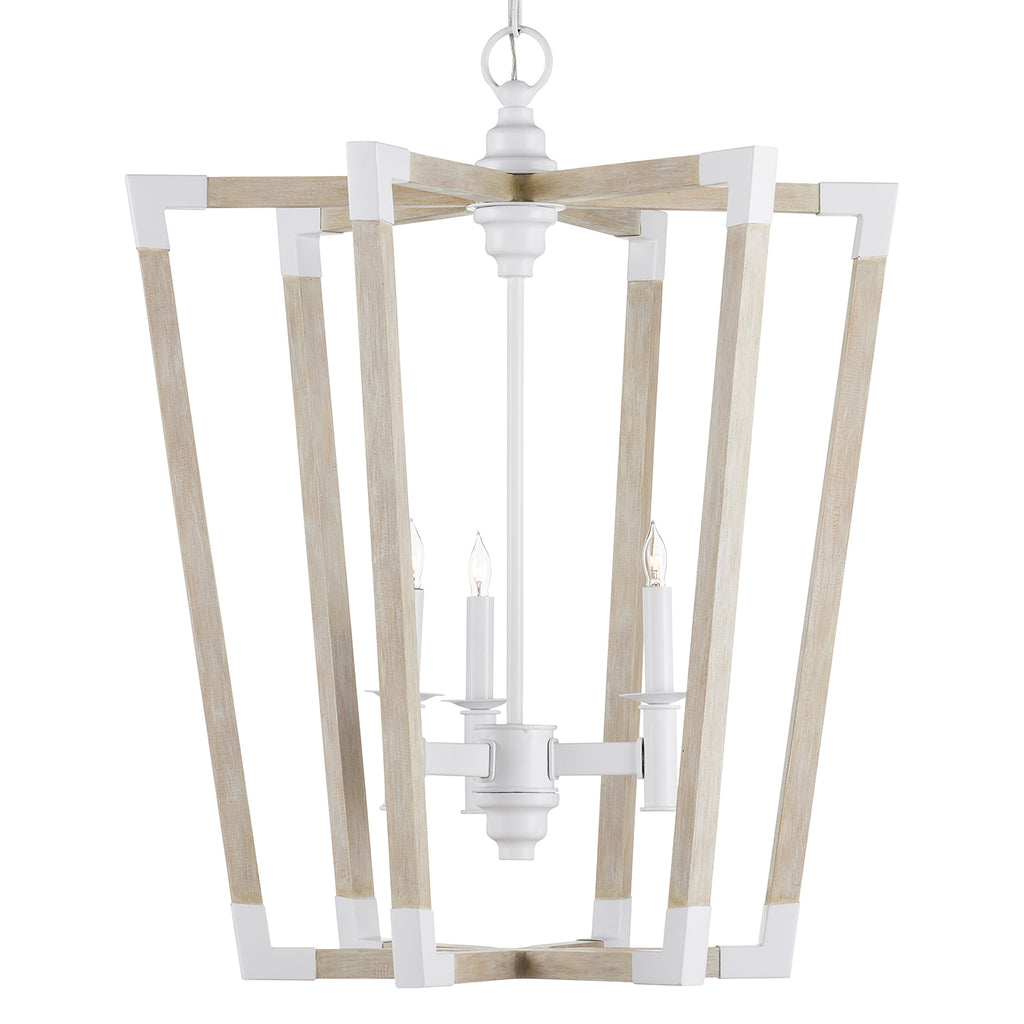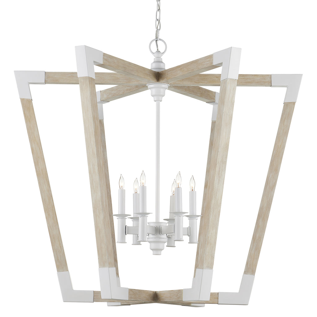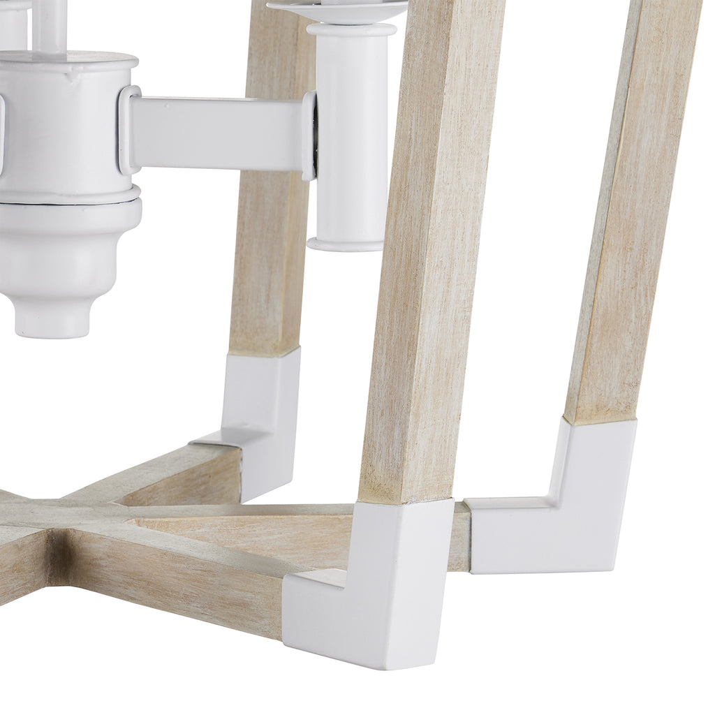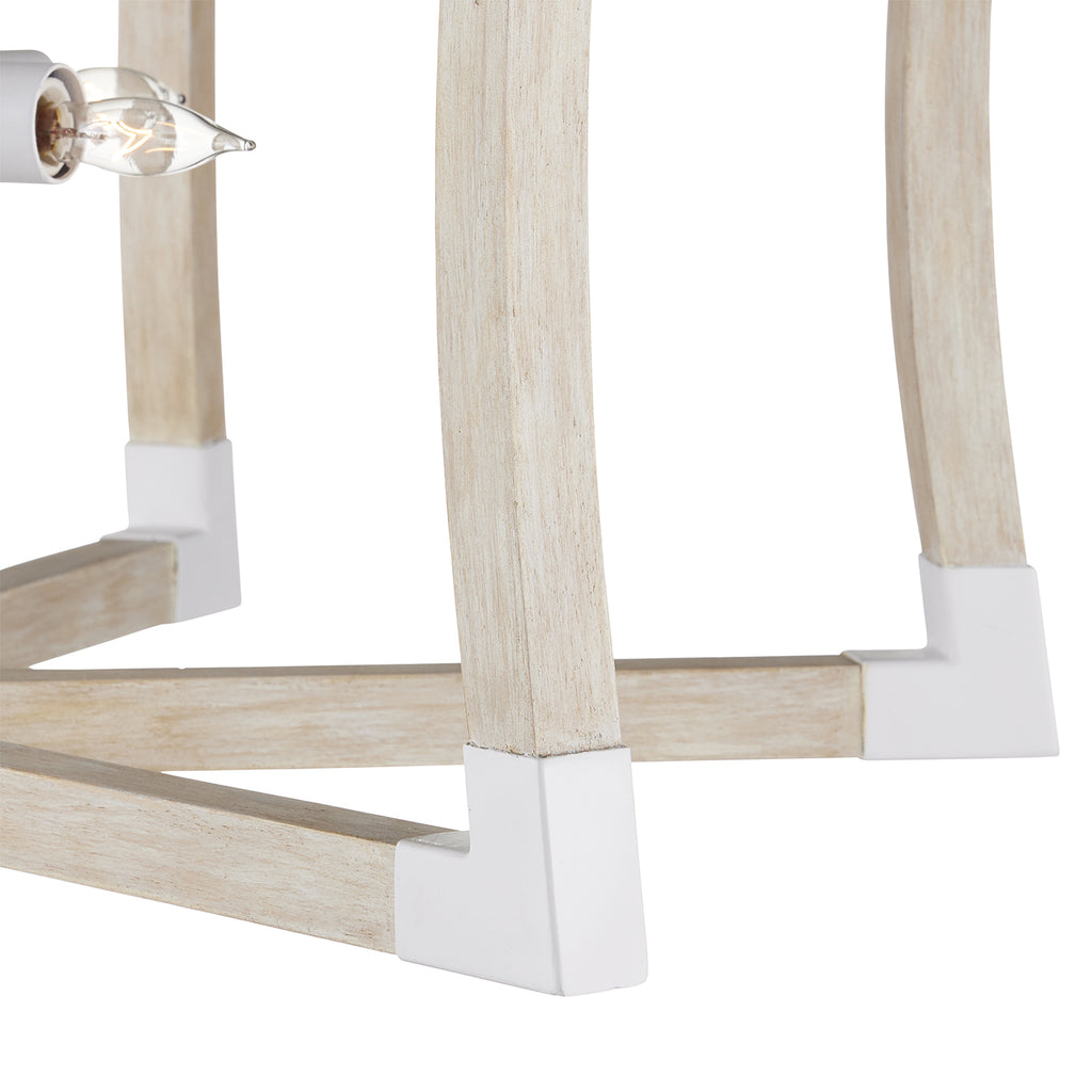 The Arts & Crafts movement inspired the design of the Bastian Sandstone Lantern, which is made of wrought iron and wood in sugar white and sandstone finishes. The crisp feel of the white metal clasping the spokes of washed wood brings extra sophistication to this lantern-shaped chandelier. Tom Caldwell conceived the Bastian fixtures, some of the most popular in our lighting lineup, and Pam Bailey envisioned the introductions in this new combination of finishes.