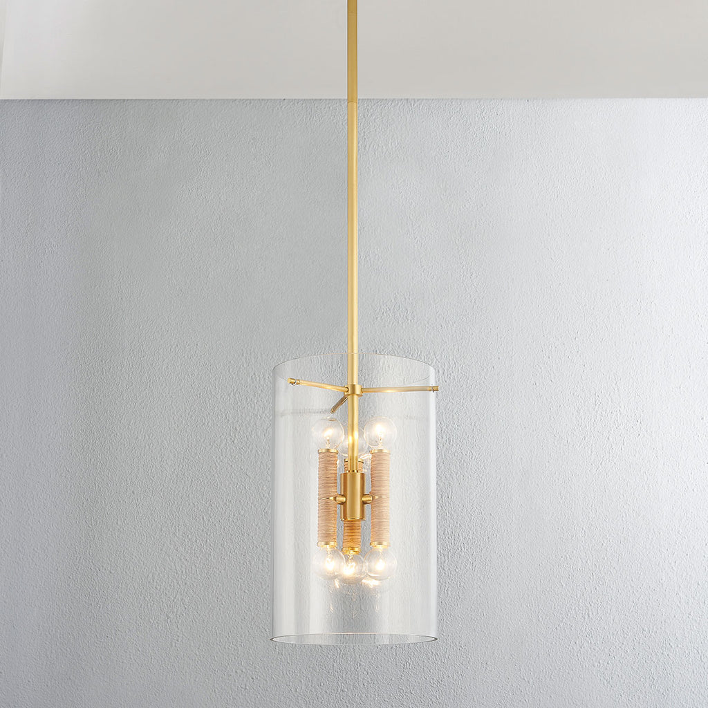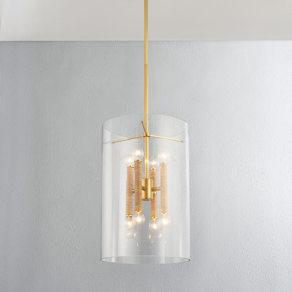 Renowned for built-to-last quality with a timeless feel, Hudson Valley offers a modern lighting collection with elegant touches, recalling vintage inspiration. An organic modern take on traditional lantern lighting, the Hudson Valley Barlow lantern’s Aged Brass, rattan-wrapped candlesticks bring natural beauty to this elegant pendant. Bulbs set in both directions fill the clear glass shade with brilliant light.