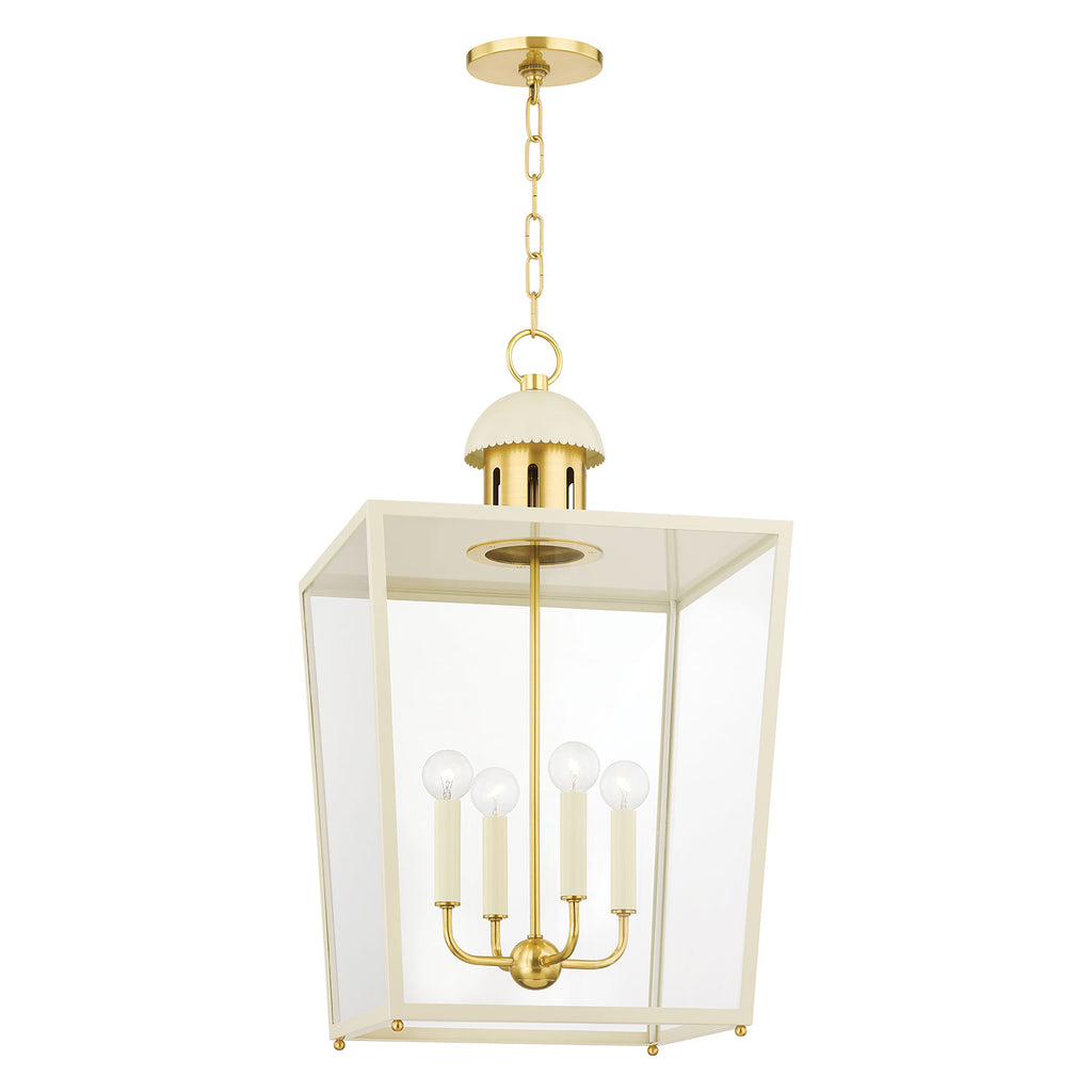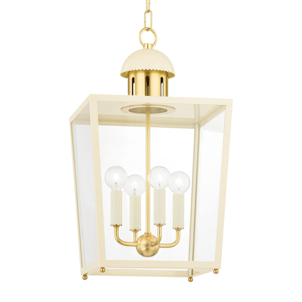 High-quality and exceedingly creative, Mitzi delivers a semi-nostalgic classic lighting collection with streamlined contemporary elements that instantly upgrade your space. Old world meets new world in this luxe Mitzi June lantern. Aged brass and soft cream or black are a delightful duo, complementing the regal frame. A miniature dome at the top of the frame features the most delicate scallop detail, lending a cottage vibe to the classic style. Also available in a larger size.