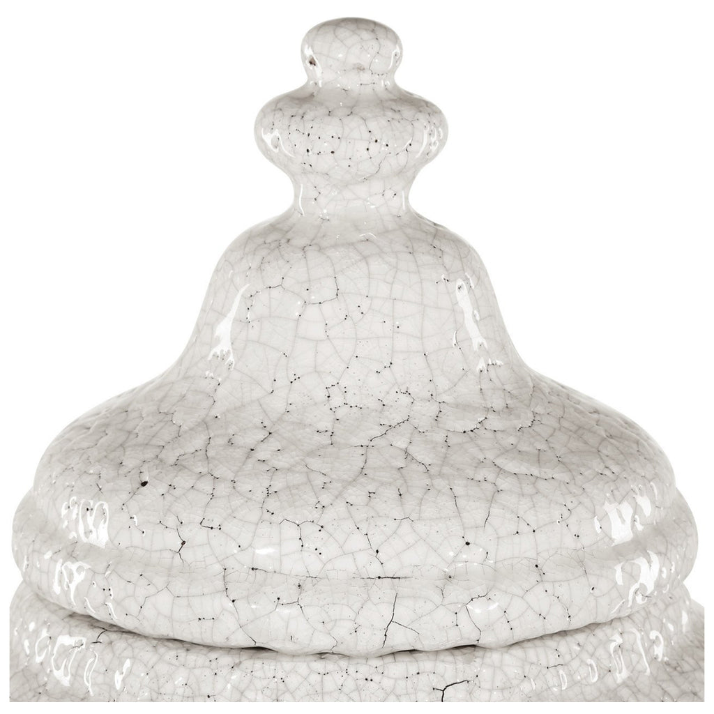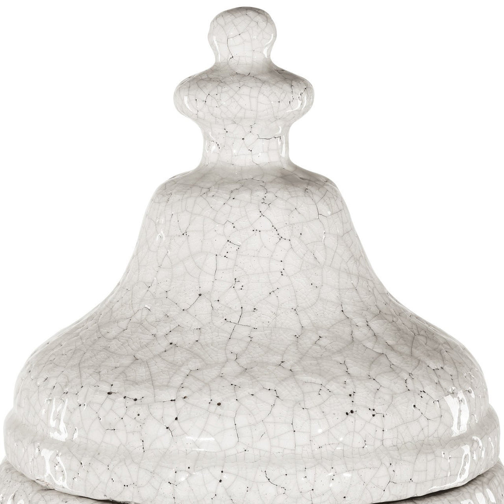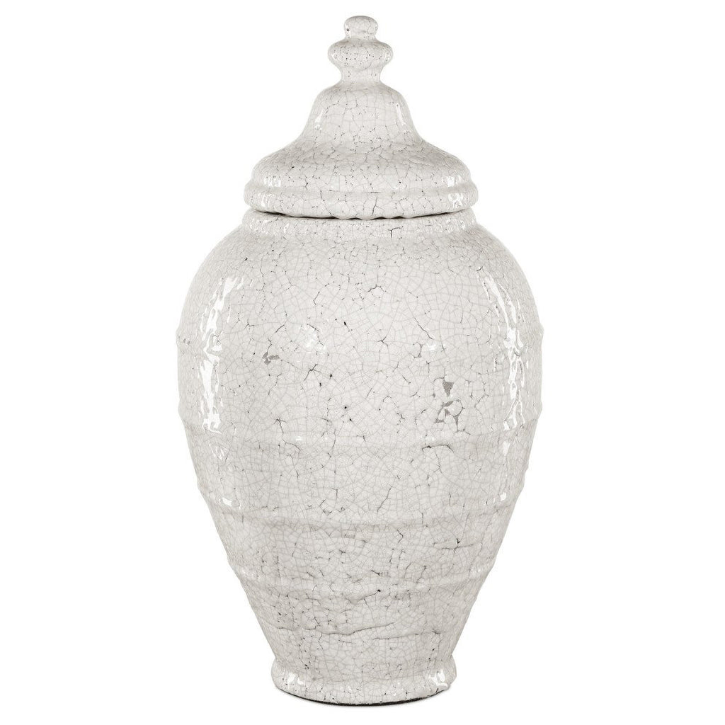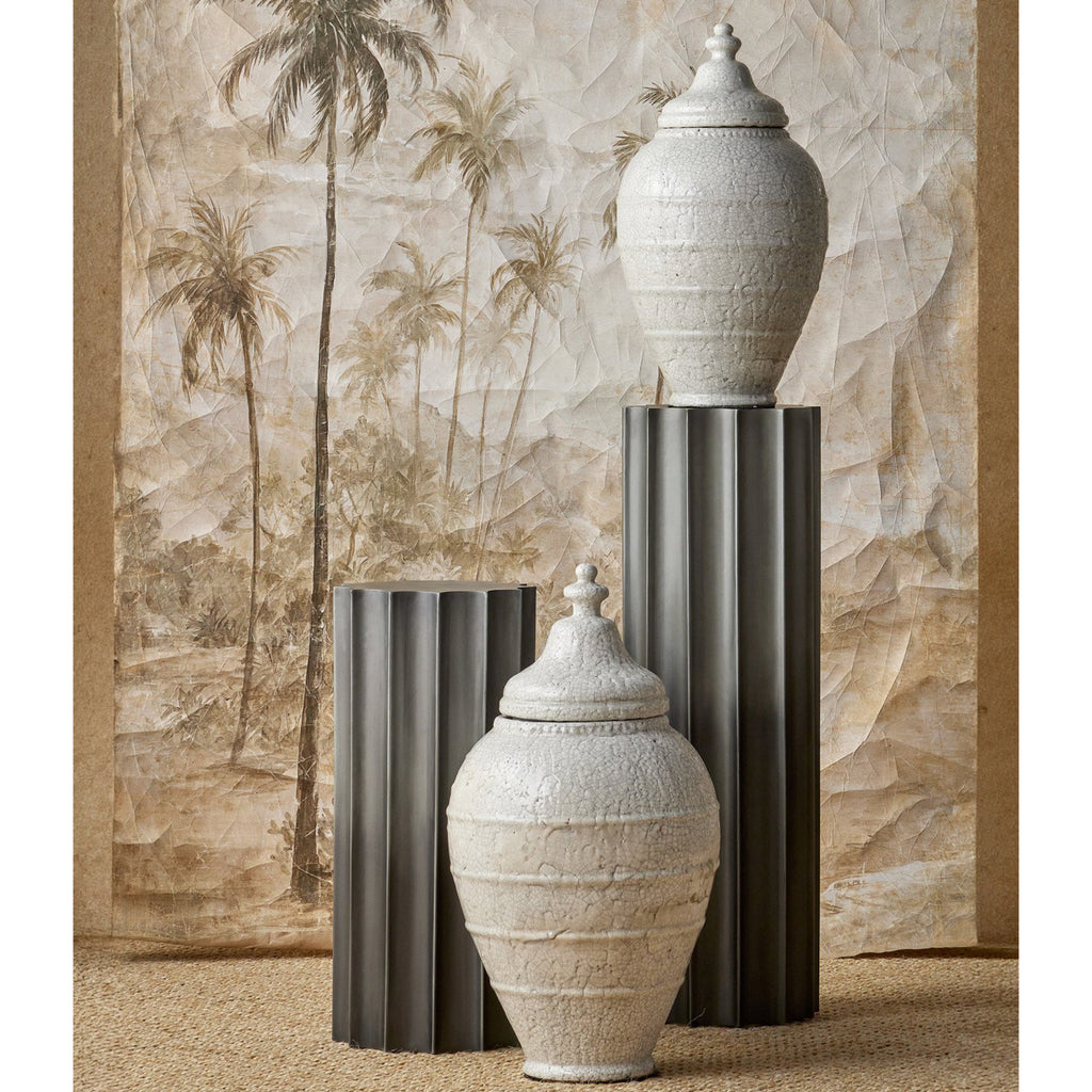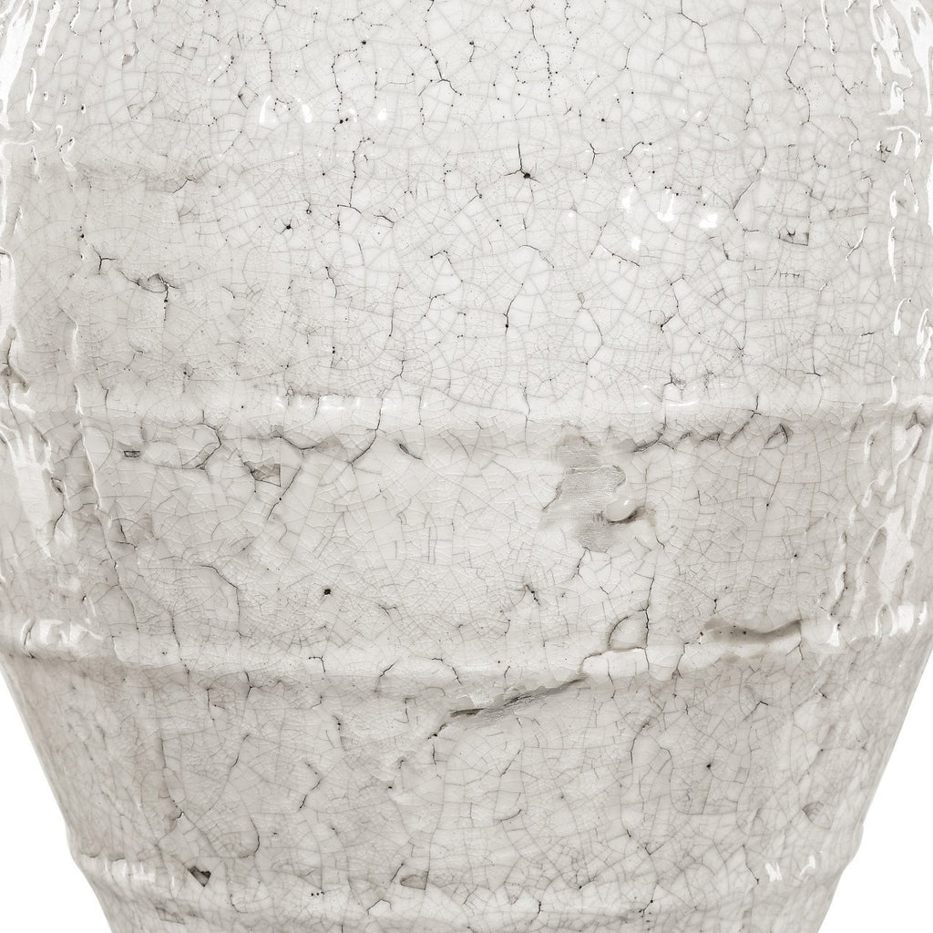 Mimicking the shapes of the terracotta jars that have historically been used for preserving olives in oil, the Virginal Jar is made of terracotta with an antique-white, hand-applied glazing that is so thick and rich it has a crackle surface. The fact that this piece is hand-thrown means the shapes will vary slightly, as will the finish, which will make each of these vessels unique. Someone who spies them in an interior could be convinced they are timeless antiquities.