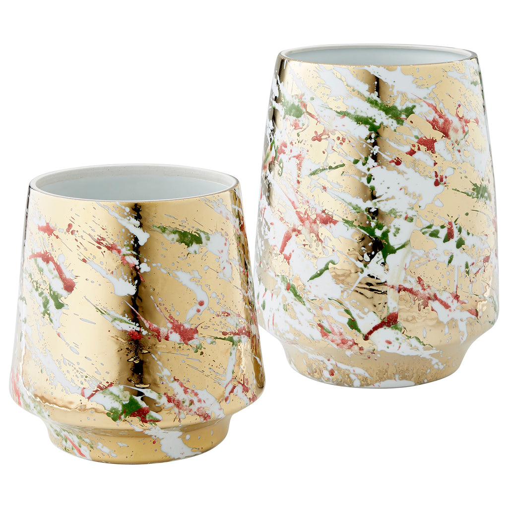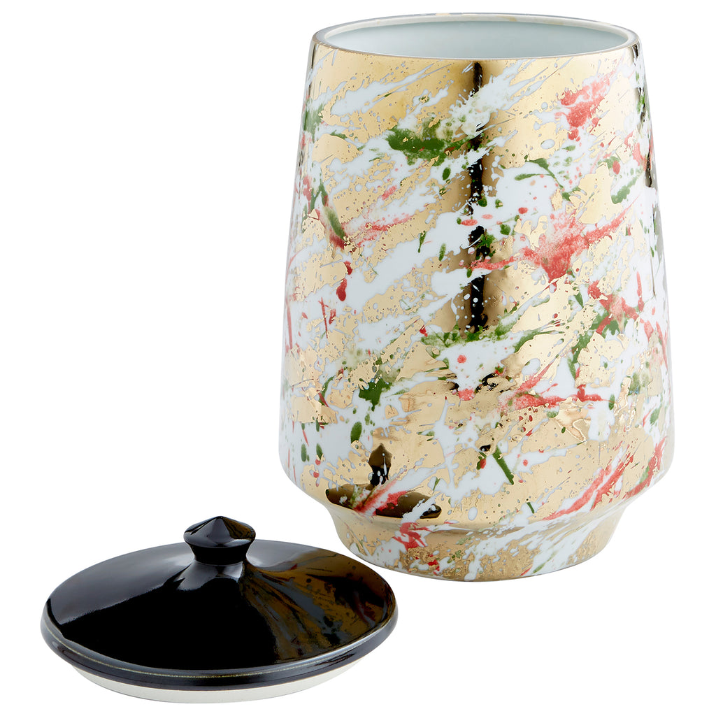 With a classic bud-shaped silhouette, this table vessel brings a touch of artisanal vibrance to any arrangement in your space. A multi-colored surface mixes red, green, and white brush splashes on a golden pallet. All covered in a glossy glaze, this vase is perfect for any modern, eclectic, or bohemian design. The artistic appeal is evident in this ceramic accent. The colorful notes make it the ideal accessory to store your floral arrangements, branches, or to display on its own. Update your kitchen countertop, or add some lively-contemporary style to your entryway space with the Ardent Splash container.