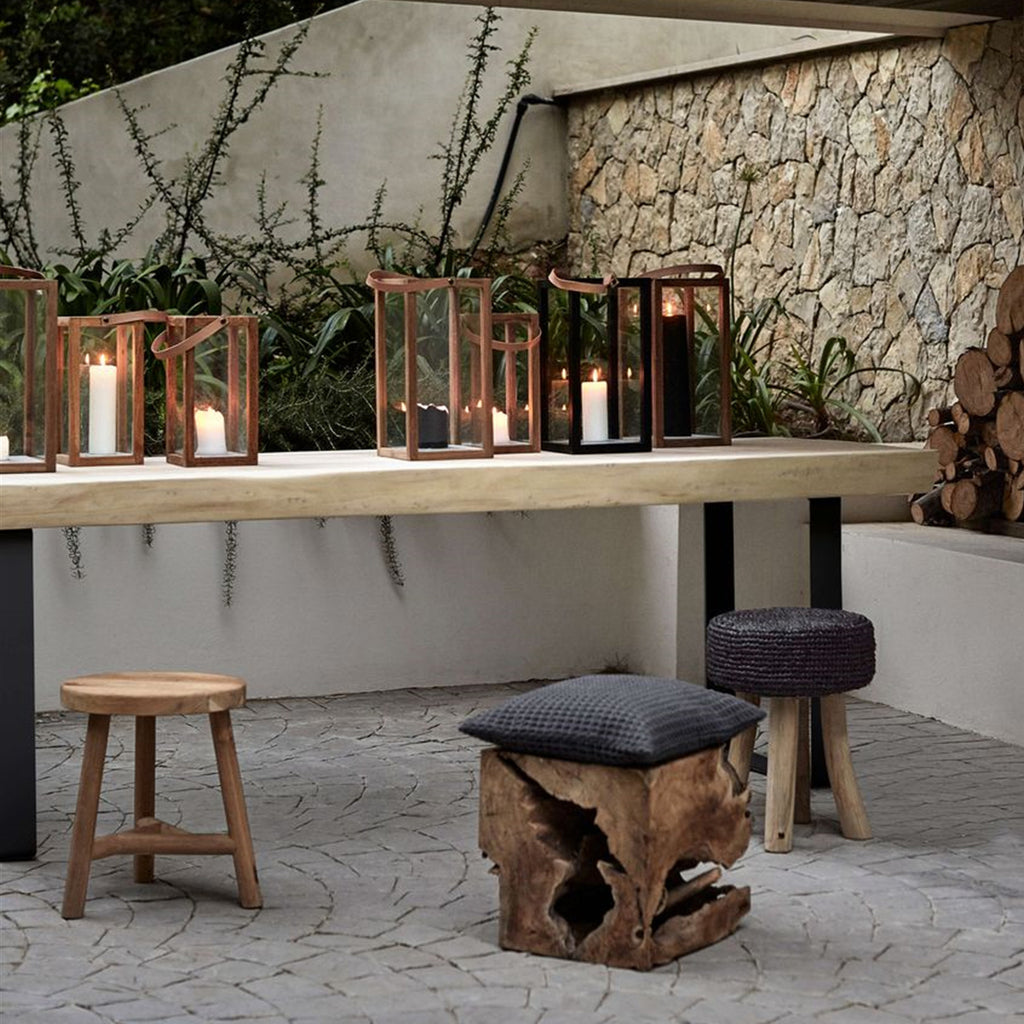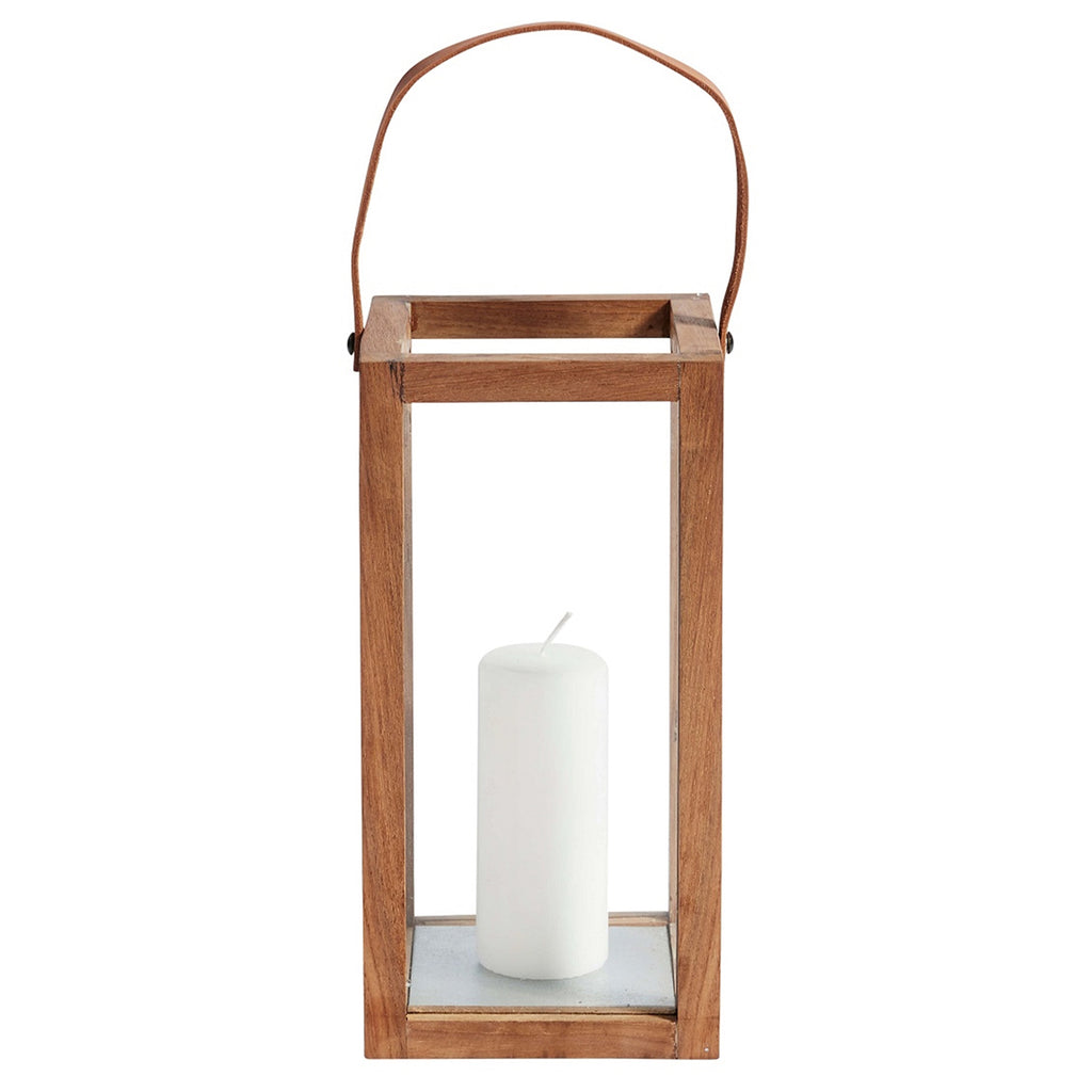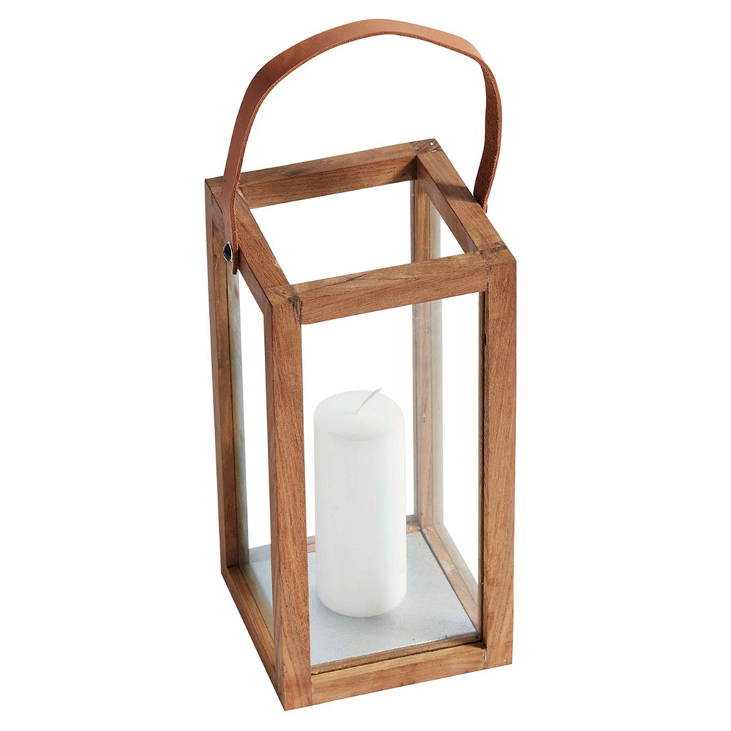 The squared Manning Lantern in natural teak, has a Nordic expression with the straight shape and contrast between the delicate glass and recycled teak. The natural materials including the beautiful leather strap results in an enduring object that is beautiful on its own with candles or can be combined with decorative objects in other shapes and sizes.