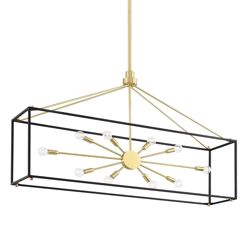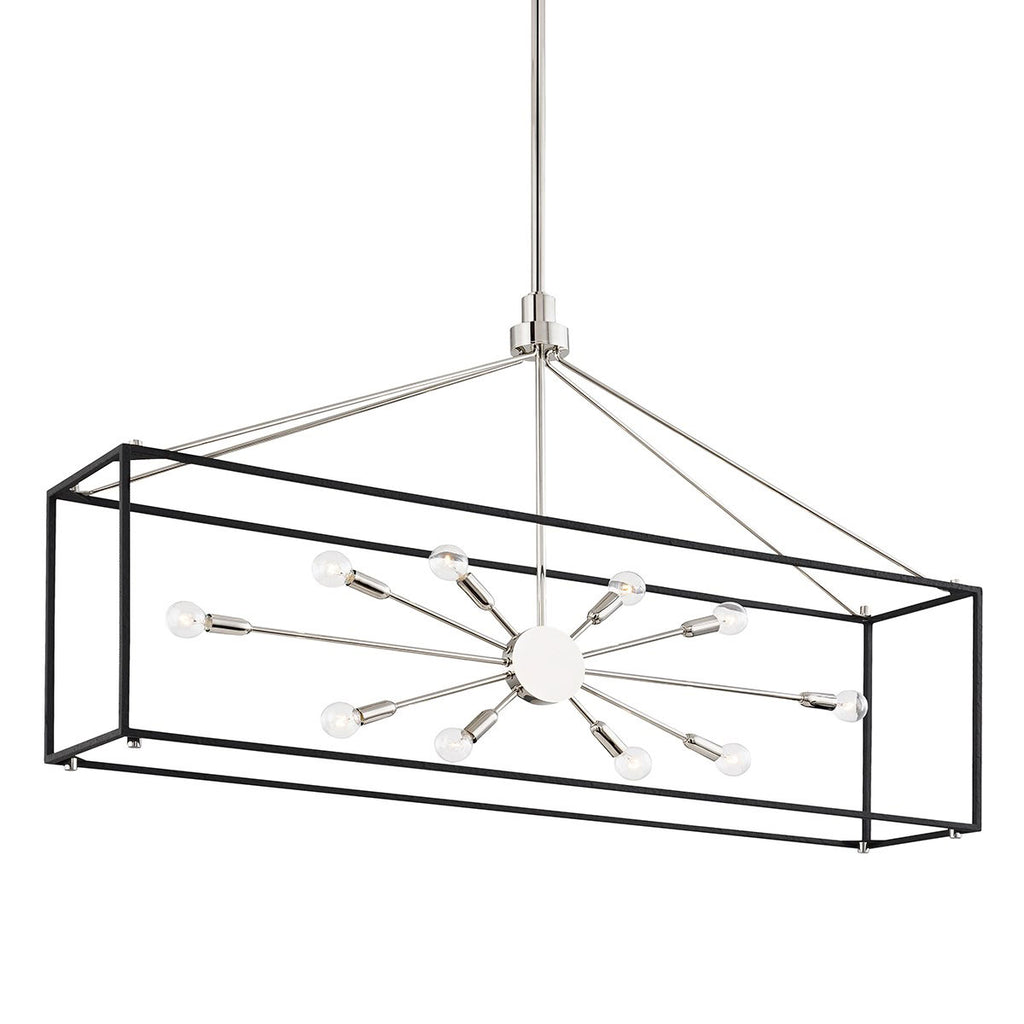 Renowned for built-to-last quality with a timeless feel, Hudson Valley offers a modern lighting collection with elegant touches, recalling vintage inspiration. The Glendale collection revives the innovative spirit of Sputnik by suspending the signature starburst within a crisp, black, textured iron cube to create a play of stunning effects. The capsule shape of the tungsten filament bulbs offers smooth respite from the striking linear motifs. Extending the starburst's sleek metal rays to anchor points in the cube's inner corners allows the chandelier to float within a darkly outlined space.