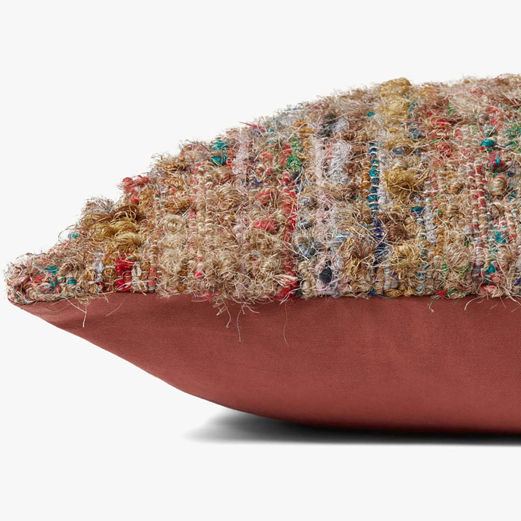 This large, hand-crafted floor pillow with an earthy brown and multicolor palette creates cozy extra seating for your living room decor. The 36"W x 36"D x 6"H pillow is hand-crafted of cotton, wool, and polyester in India.