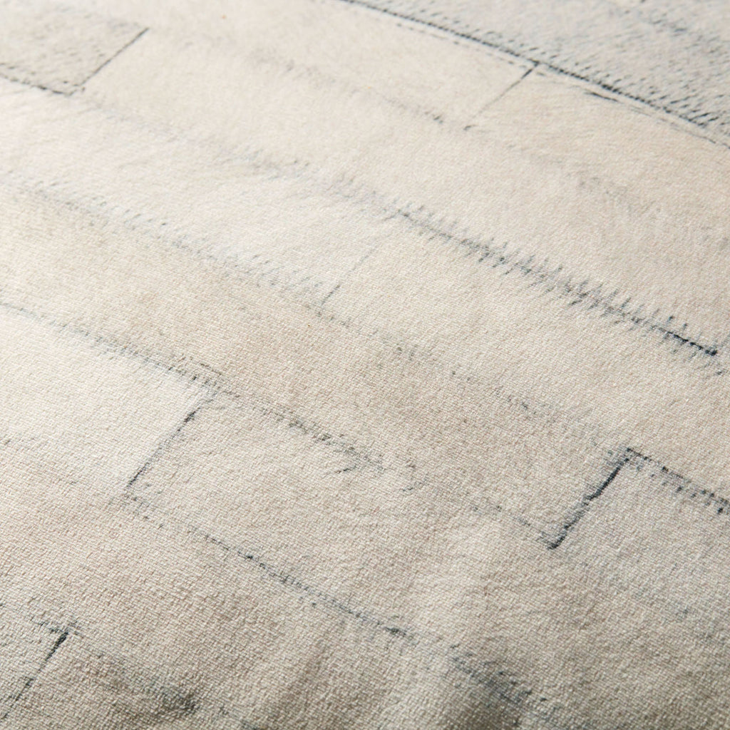 This modern pouf with a geometric, faux cowhide design can be used as an accent piece, an ottoman, or extra seating in your living room or bedroom. The ivory and gray-toned pouf measures 20"W x 20"D x 20"H and is machine-woven of easy-to-clean polyester.