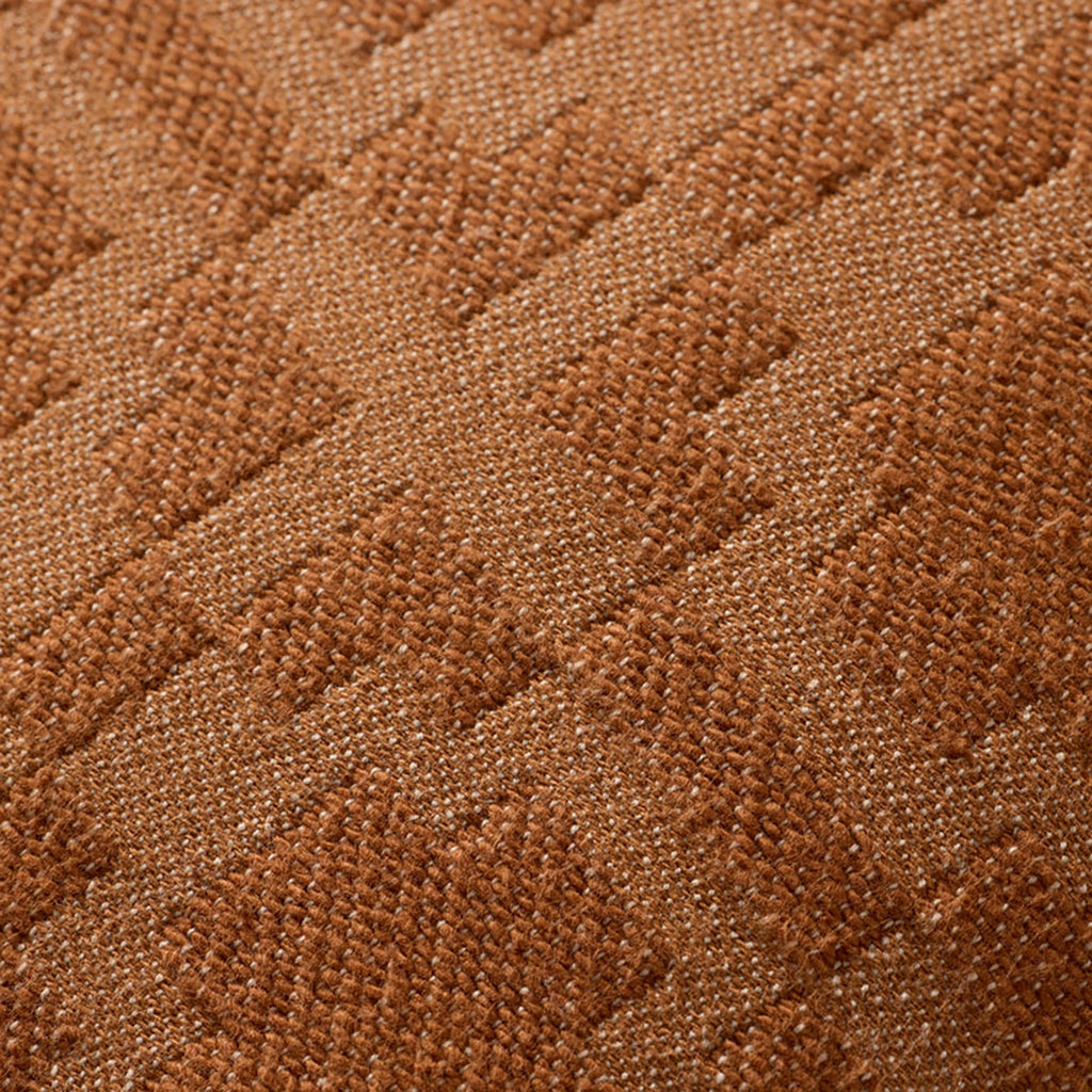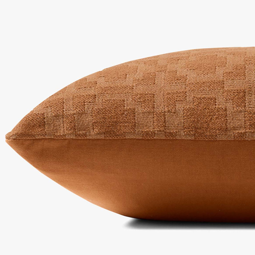 This textured terracotta red throw pillow is jacquard woven with a geometric print, a beautiful neutral accent for traditional, boho, or farmhouse home decor, among other classic styles. The 18” x 18” square pillow is jacquard woven in India of 100% cotton.