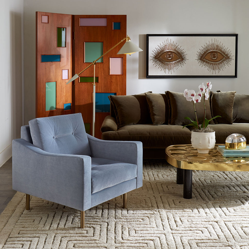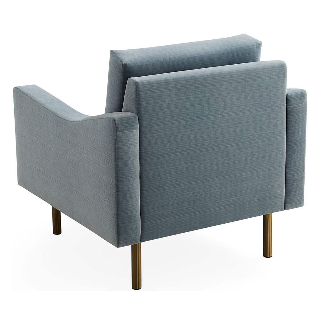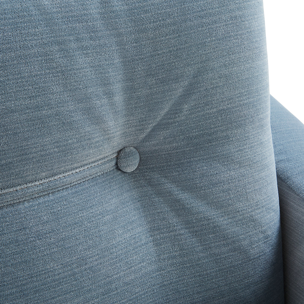 Featuring a clean and boxy silhouette with a swoop in its arm that catches your elbow, our Marnie Lounge Chair is modern, elegant and, with button-tufted cushions, ultra comfy. In-stock a cool cerulean hue on brushed stainless steel legs. Perfect for pairing up, Marnie is a natural for settling in for cocktail hour conversation and the cocoon everyone wants in their reading nook.