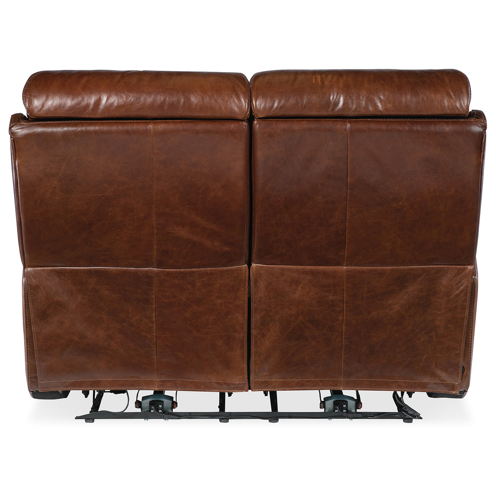 Casual goes chic with the Harlan Zero Gravity Power Recline Loveseat with Power Headrest, featuring a bustle style back, sloped/scooped arm design and topstitch trim. The loveseat is covered in the aniline top-grain Carrington Walnut aniline top-grain leather. A USB port adds convenience.