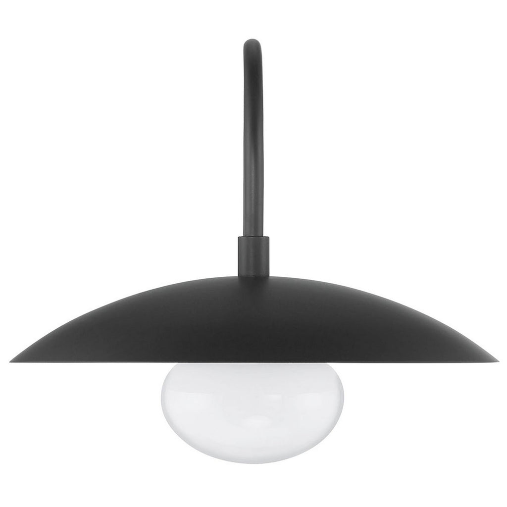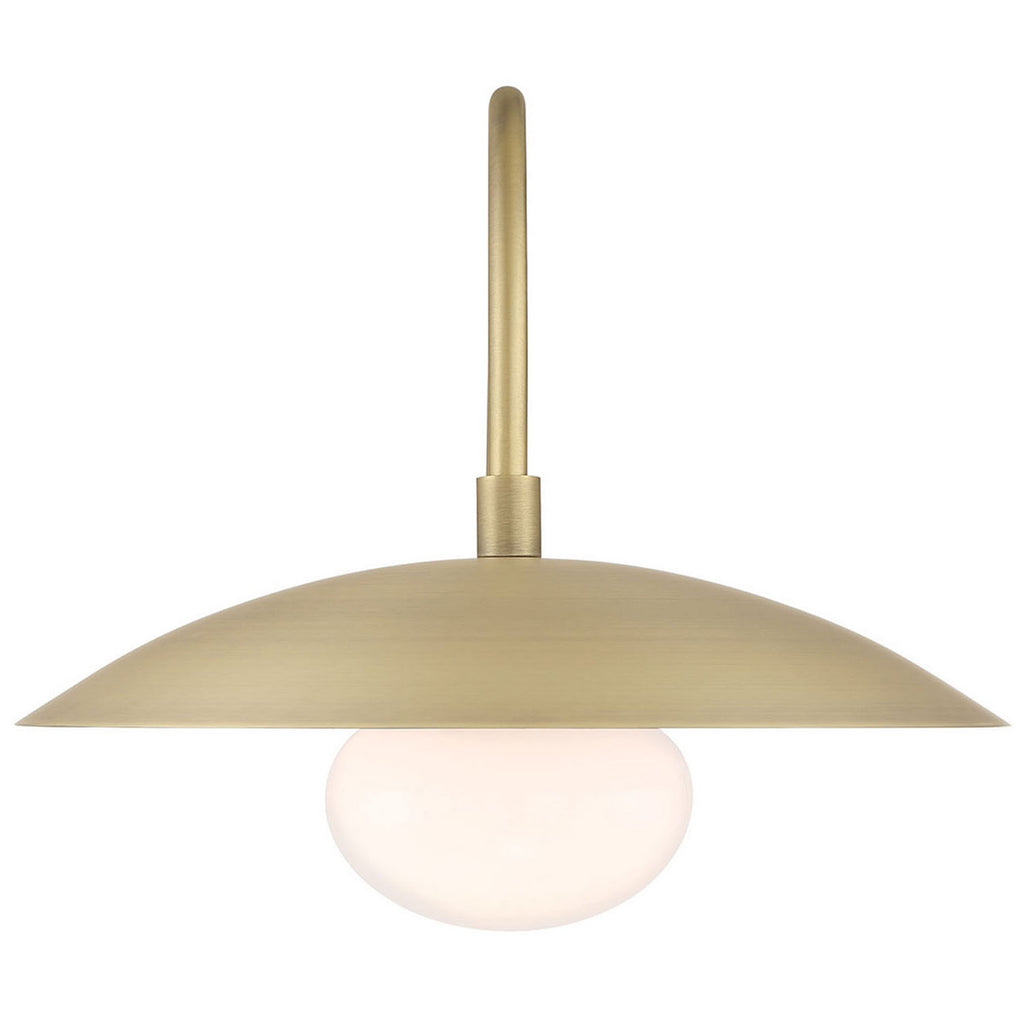 The Declan Modern Disc 1-Light Wall Sconce is a bold design featuring a 12-inch diameter dome and oblong frosted glass globe to capture and softly distribute the light. Use this sconce in a sleek modern space or in an eclectic setting. We love the idea of using a pair of these over sofa side tables to replace table lamps, or on each side of a entry door to illuminate a catch-all table and coat hook.