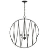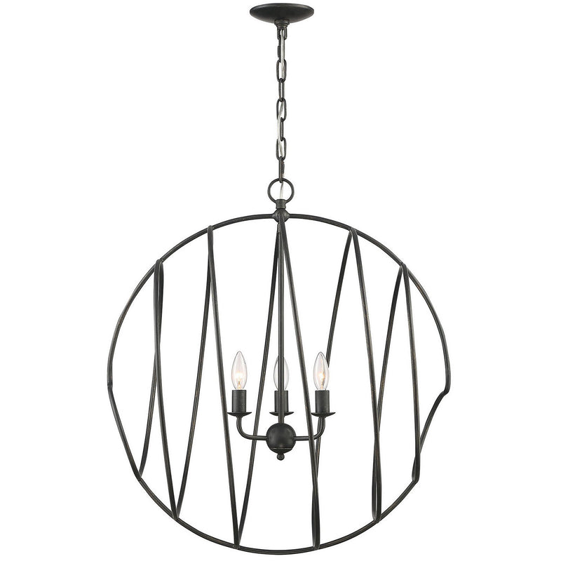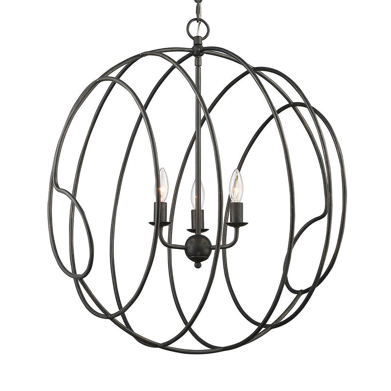 Impressive scale lends the Conduit 3-Light Industrial Orb Chandelier its dramatic presence. Conduit takes its name from the bands of interconnected iron work, finished in hand-applied Blacksmith finish, that culminate on either side with a flourish. At 26 inches in diameter and 29 inches tall, this ceiling fixture is well-suited to urban, loft or industrial applications, and could be equally at home in a modern farmhouse environment. Consider this piece over a kitchen table or island, or in a comfortable family room.