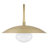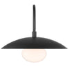 The Declan Modern Disc 1-Light Wall Sconce is a bold design featuring a 12-inch diameter dome and oblong frosted glass globe to capture and softly distribute the light. Use this sconce in a sleek modern space or in an eclectic setting. We love the idea of using a pair of these over sofa side tables to replace table lamps, or on each side of a entry door to illuminate a catch-all table and coat hook.