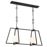 Generous scale highlights the industrial design of the Stratus Large 2-Light Linear Bronze Chandelier. Measuring 40 inches long and 25 inches in height, this statement chandelier is made of iron with a hand-rubbed dark bronze finish. At home in a modern farmhouse kitchen or over a dining table in an urban loft, Stratus glows warm through its pair of white glass globes.
