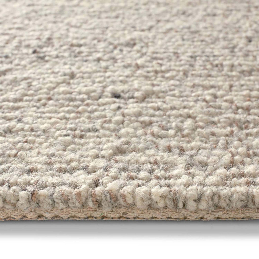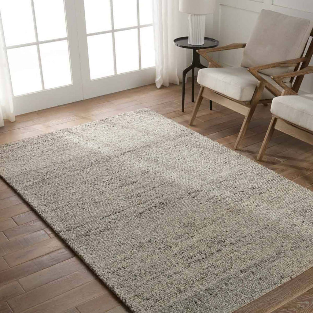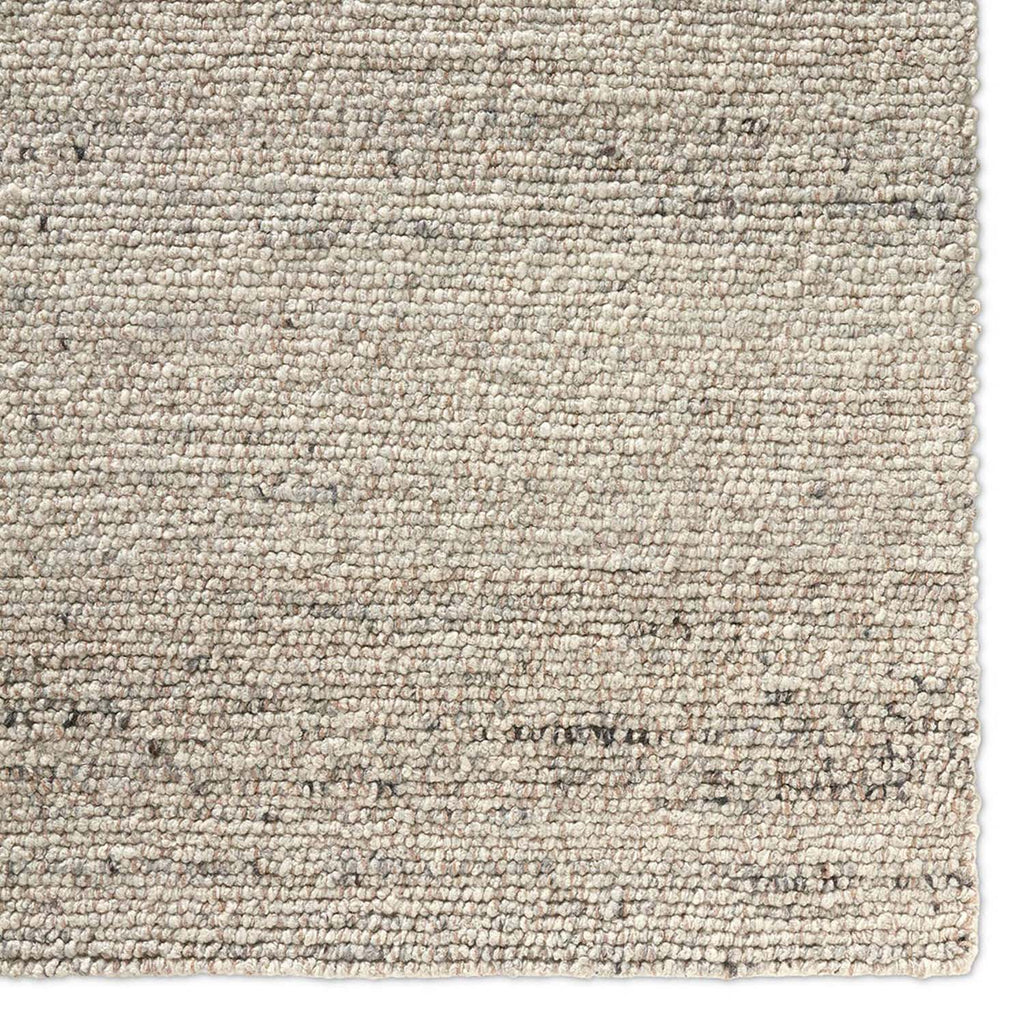 The handwoven Jaipur Living Navarra collection brings effortless cozy vibes to homes with a uniquely wrapped wool yarn and chunky texture perfect for creating warmth and inviting appeal. The Burch design features a gray, cream, and brown colorway with flecks of black throughout, creating a truly unique accent piece. The backing provides extra comfort underfoot and support for this 100% wool rug. The thick weave best suits low traffic areas of the home such as bedrooms, formal dining spaces, and formal living spaces.