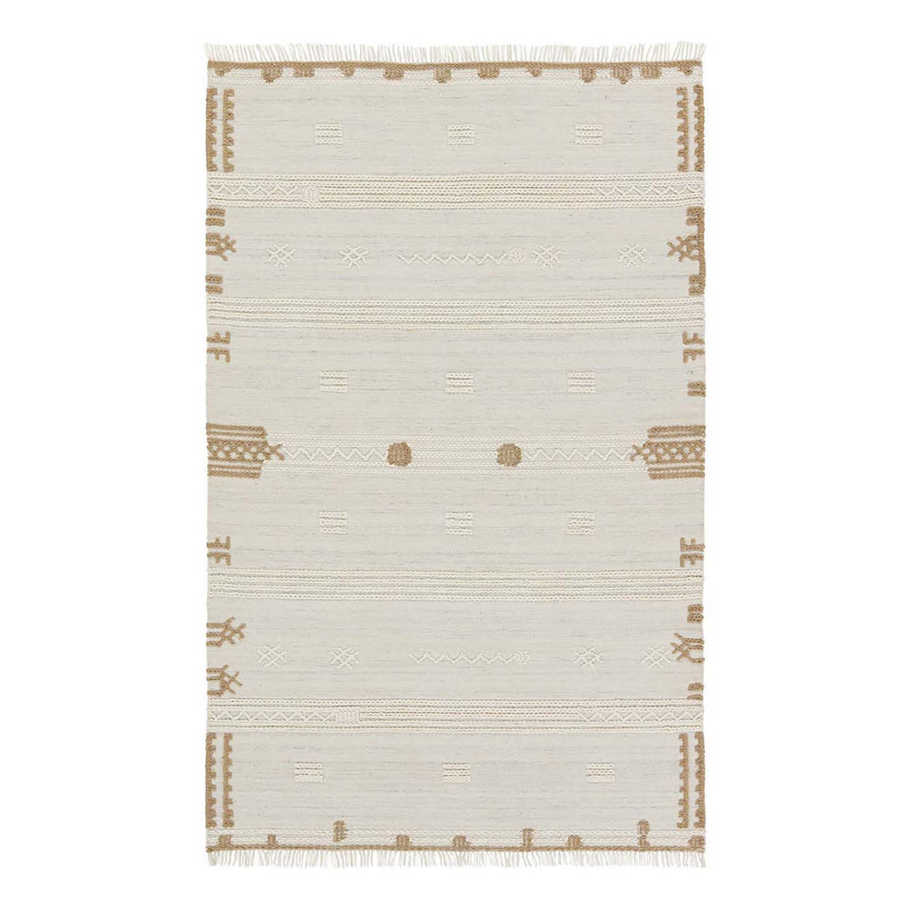 The Jaipur Living Revelry collection marries global modernity with durable, performance fibers. The light and airy Noble area rug boasts a captivating, tribal stripe design in a stunning ivory, brown, cream, gray, and black colorway. An updated twist on traditional dhurrie style, this handwoven indoor/outdoor rug is crafted of versatile PET or recycled plastic bottles.