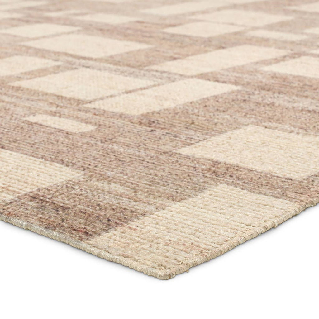 The Jaipur Living Armes design features an abstract modern geometric look in shades of tan that’s sure to make a statement. A digital print is layered on a handwoven base, offering durability and easy care—with a sophisticated, high-end look..