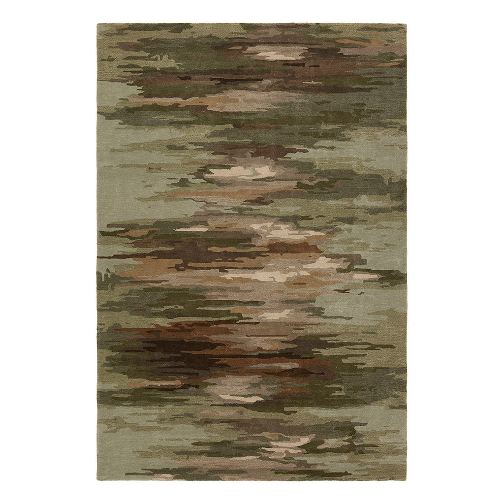 Infused with a whimsical spirit and sophisticated flair, the Jaipur Living Genesis collection brings an artistic edge to any contemporary home. The Ryenn design features an abstract, grounding green and brown pattern, enhanced with a lustrous sheen reminiscent of shimmering water reflections.