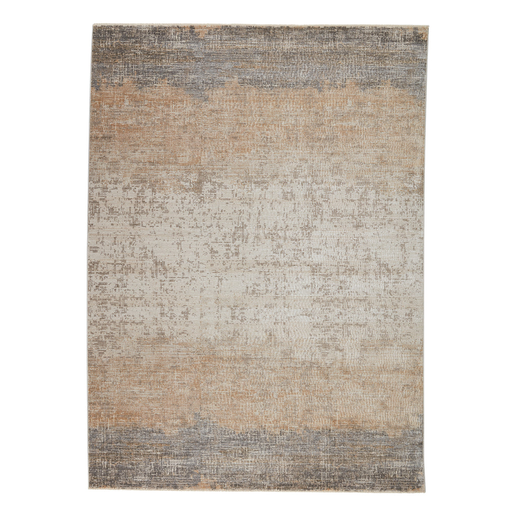 The stunning En Blanc collection captures the elegance of neutral, vintage-inspired patterns and melds Old World aesthetics with an updated and luxurious vibe. The Akari rug boasts a banded abstract motif in tonal hues of gray, golden tan, and light taupe. Soft and lustrous, this chameleon-like design emulates the timeless style of a Turkish hand-knotted rug, but in an accessible polyester and viscose power-loomed quality.