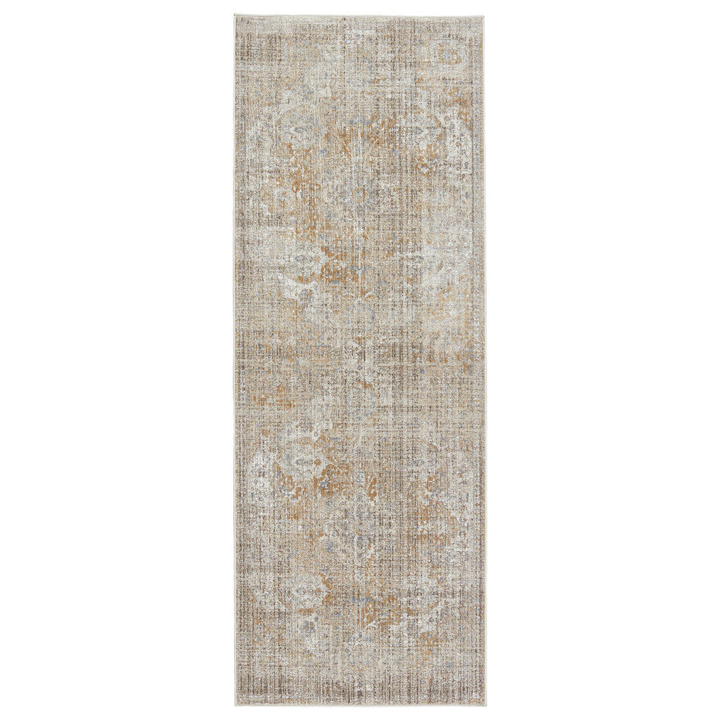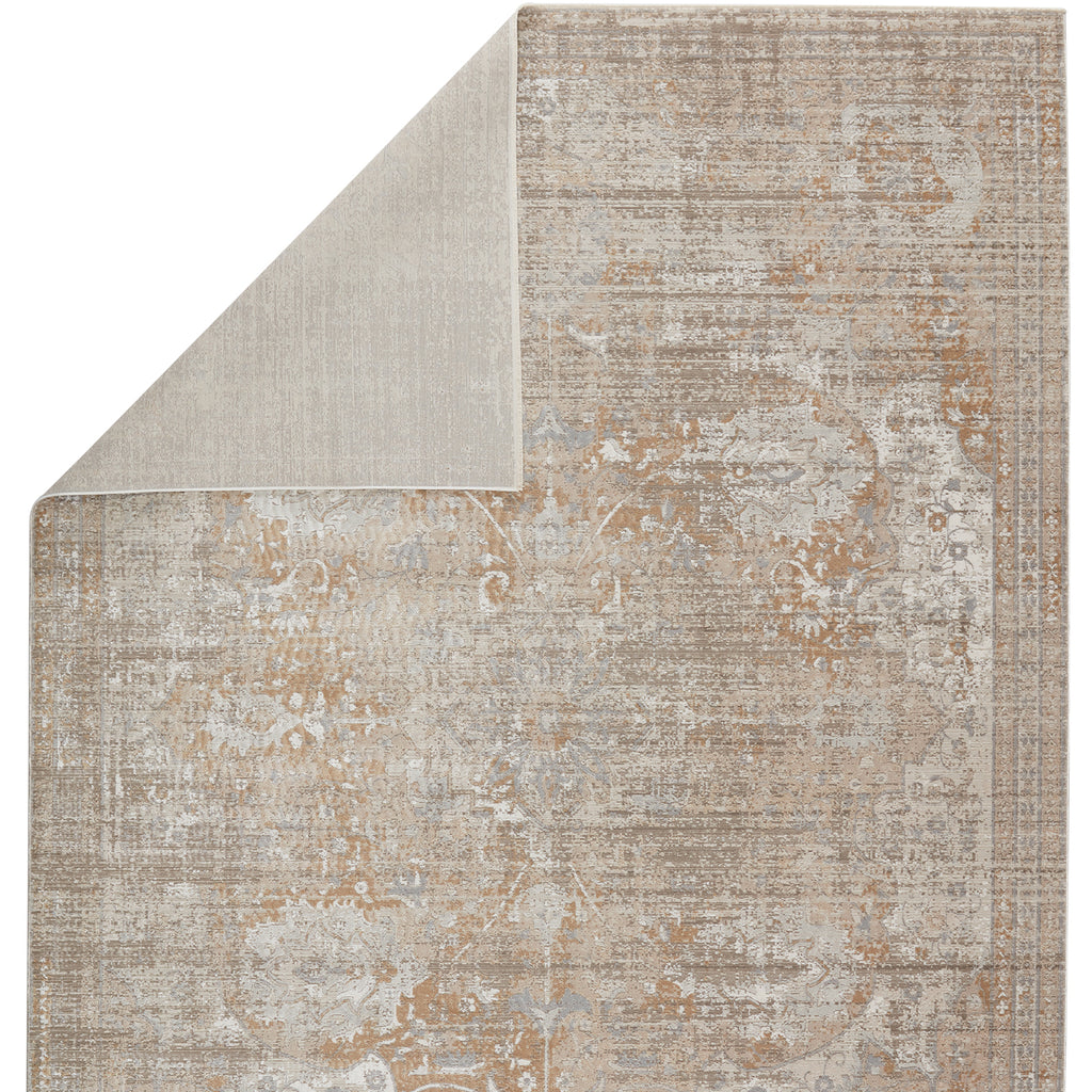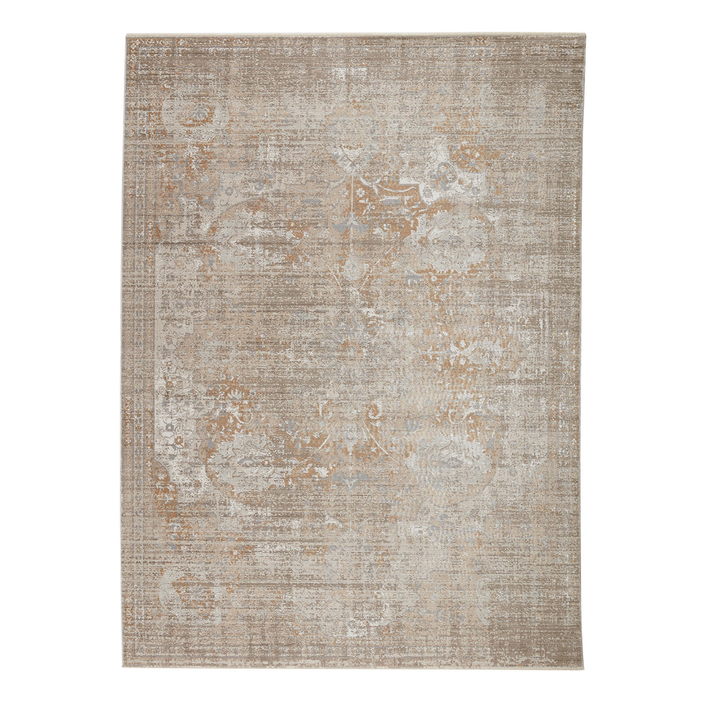 The stunning En Blanc collection captures the elegance of neutral, vintage-inspired patterns and melds Old World aesthetics with an updated and luxurious vibe. The Ginevra rug boasts a subtly distressed center medallion motif in tonal hues of silver, cool gray, golden tan, and light taupe. Soft and lustrous, this chameleon-like design emulates the timeless style of a Turkish hand-knotted rug, but in an accessible polyester and viscose power-loomed quality.