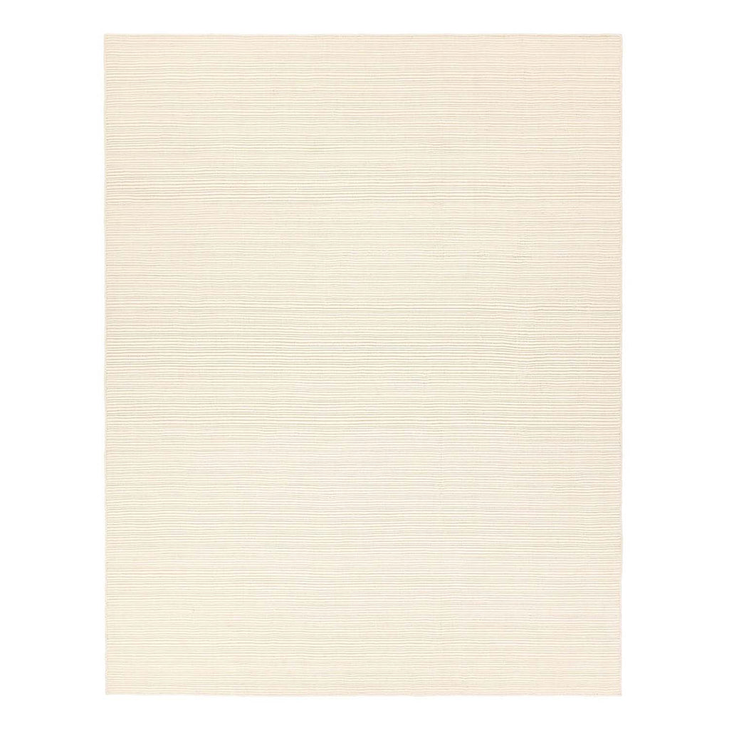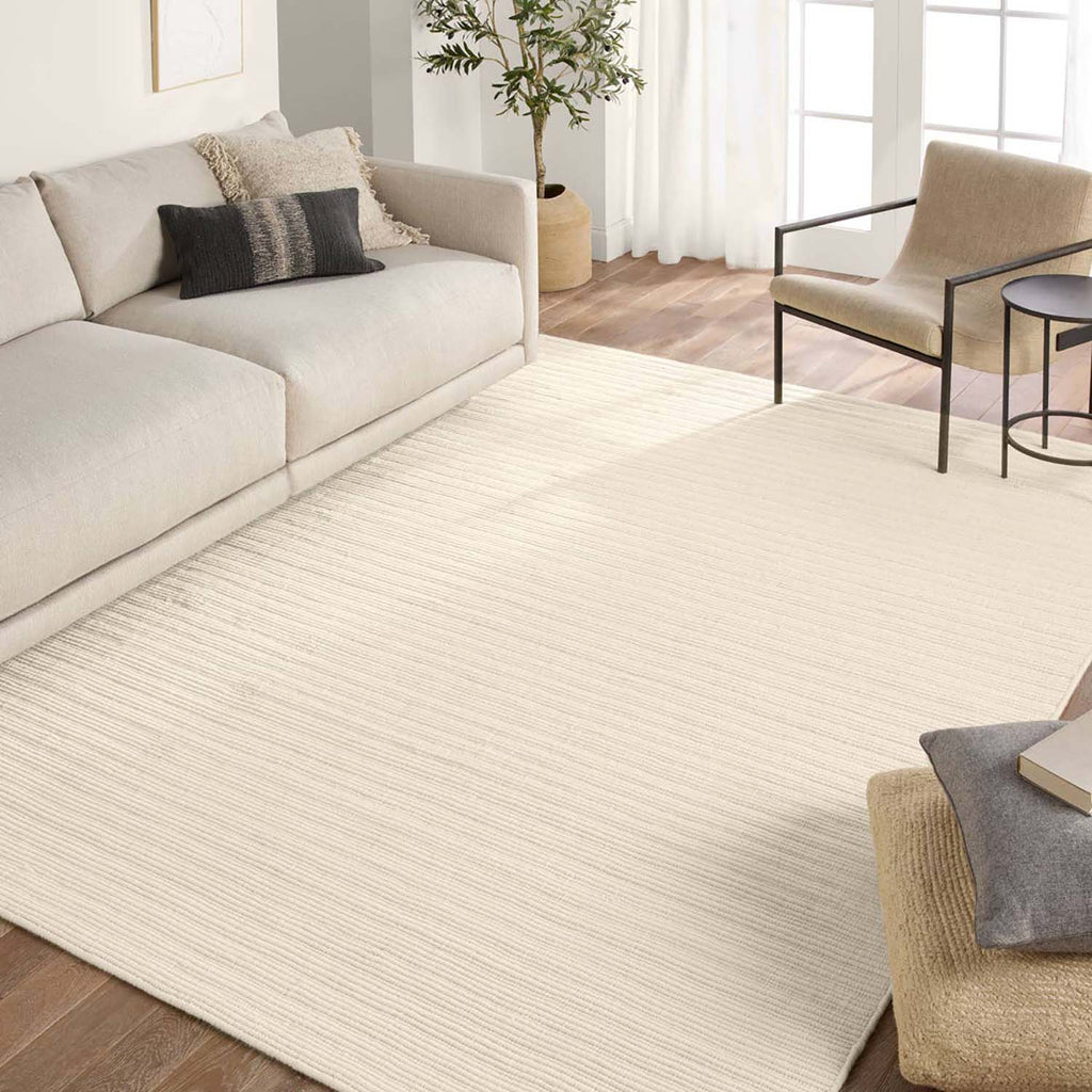 Indulging in the essence of warmth and luxury, the handwoven Jaipur Living Tepore collection features grounding solids filled with texture from the dense boucle weave. The Venue rug boasts a subtly striped design in an ivory hue. Crafted in India of 100% wool, this naturally stain-resistant accent piece thrives in medium to low-traffic spaces of the home, such as bedrooms, formal living spaces, sitting rooms, and formal dining areas.