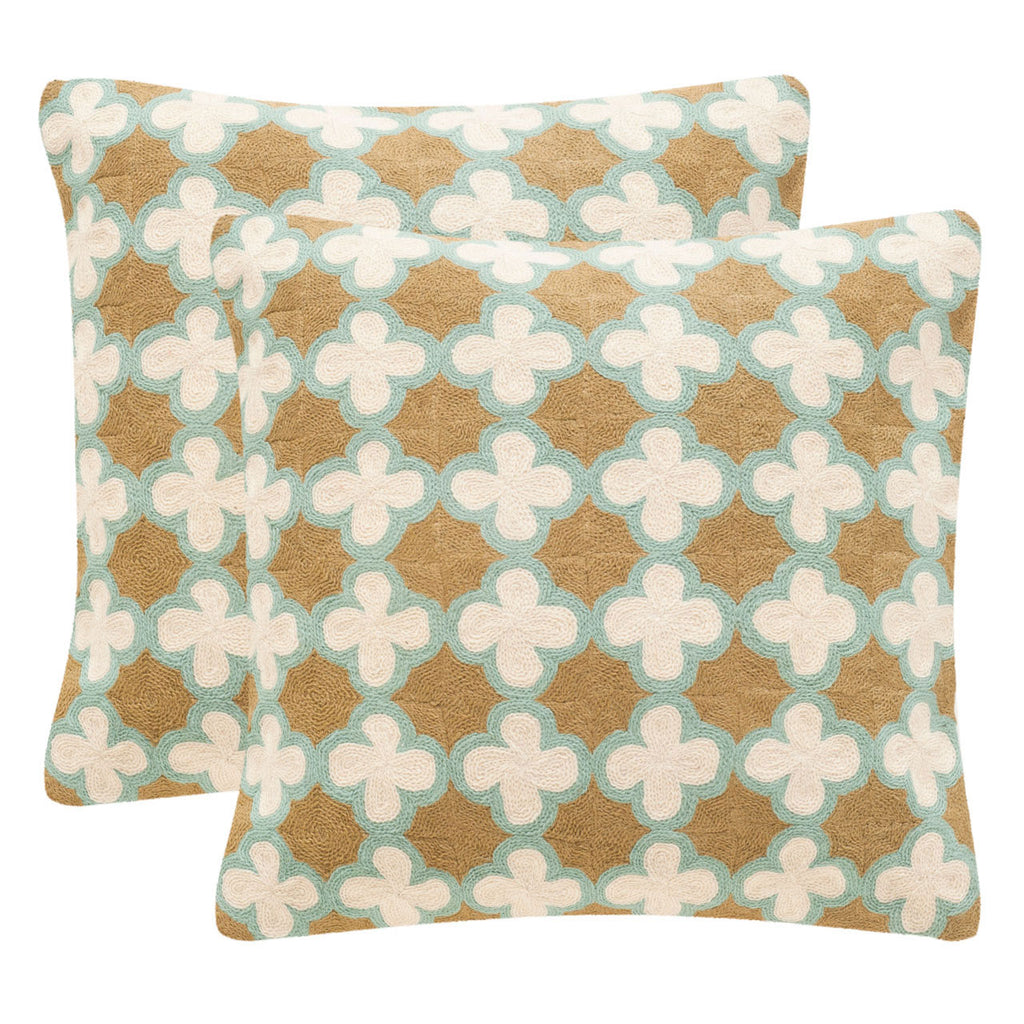 Bold and beautiful. The soft, lush chain stitch geometric pillows in the mist colorway give a fresh, updated style to a transitional interior in need of a quick makeover. Designers love their luxe wool blend, hidden zipper and feather fill. Sold as set of two.