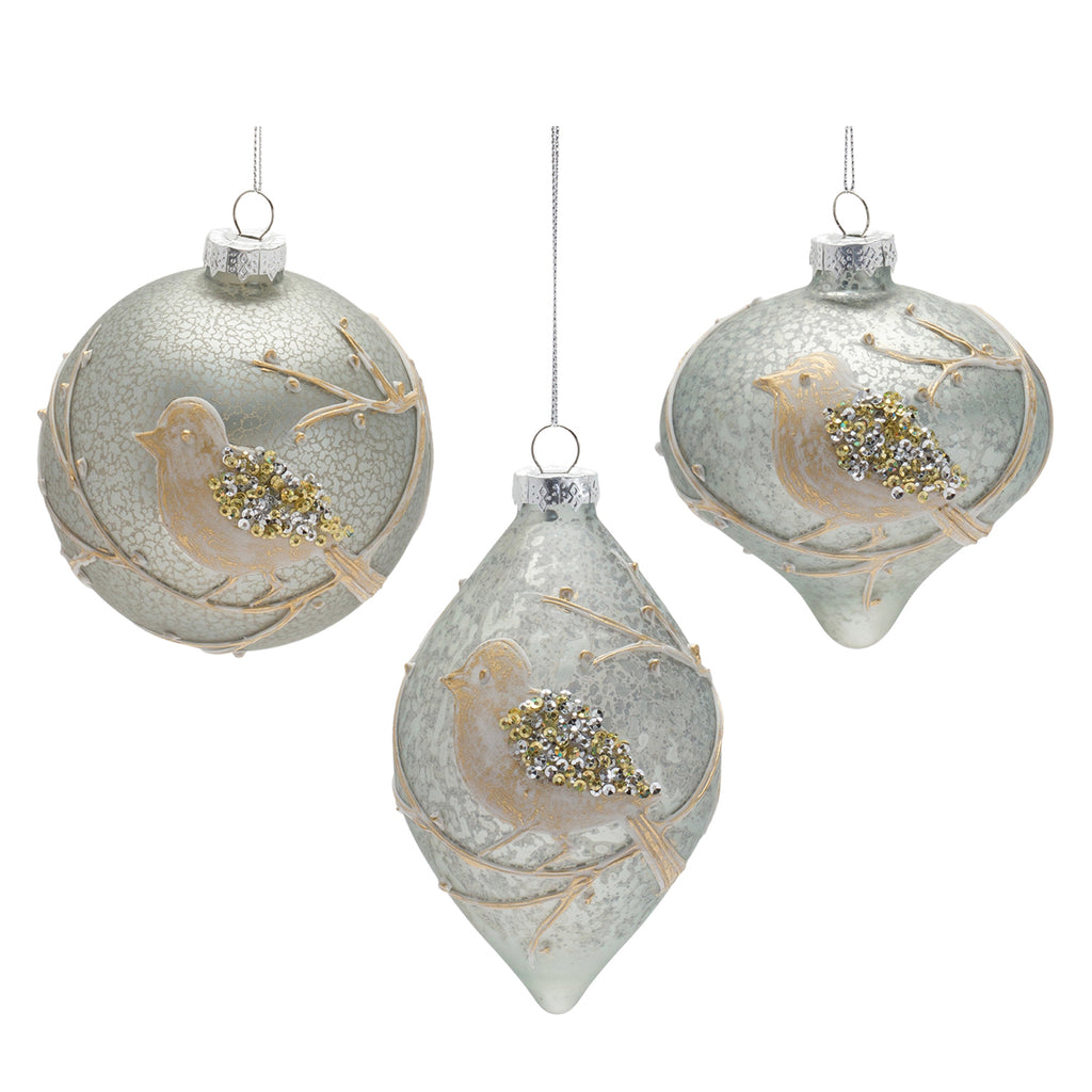 Adorn your Christmas tree and holiday decor with this stunning set of Beaded Glass Bird Ornaments. Featuring 6 pieces, the wintry ice blue tones paired with the beaded design is the perfect combination to create a memorable display. The quality glass composition and delicate silver string hanging accent is sure to endure for seasons to come. Whether you're adding a touch of cheer to your home or gifting to a loved one, these ornaments will definitely bring smiles.