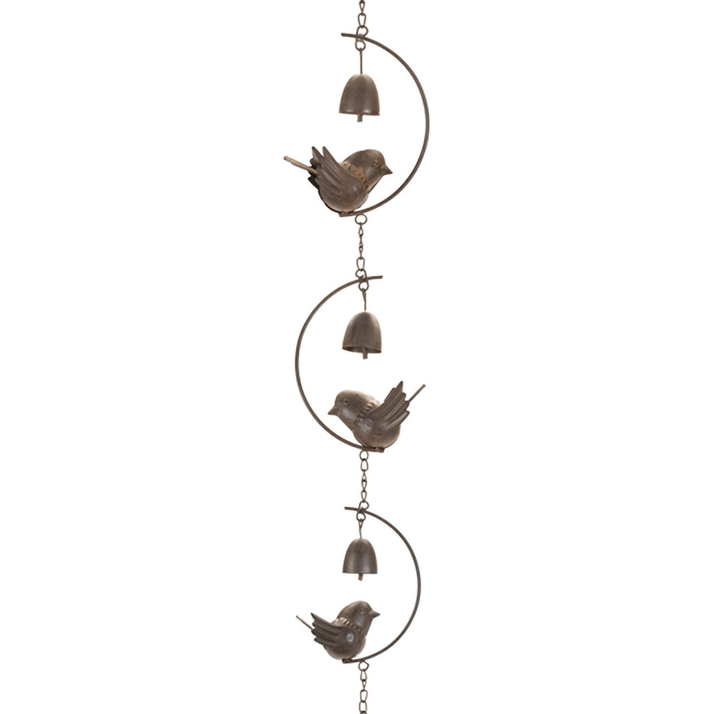 Decorate your home or garden this spring season with a Bird Bell Rain Chain. Its sturdy iron metal construction and chic bronze finish and trendy bird and bell design is guaranteed to last through the years. Rainwater collects and drips onto the descneding birds and bells on the chain. The soothing sound of water will create a relaxing ambiance in your garden retreat. Attract all the brids and butterflies to your yard with this enticing piece.