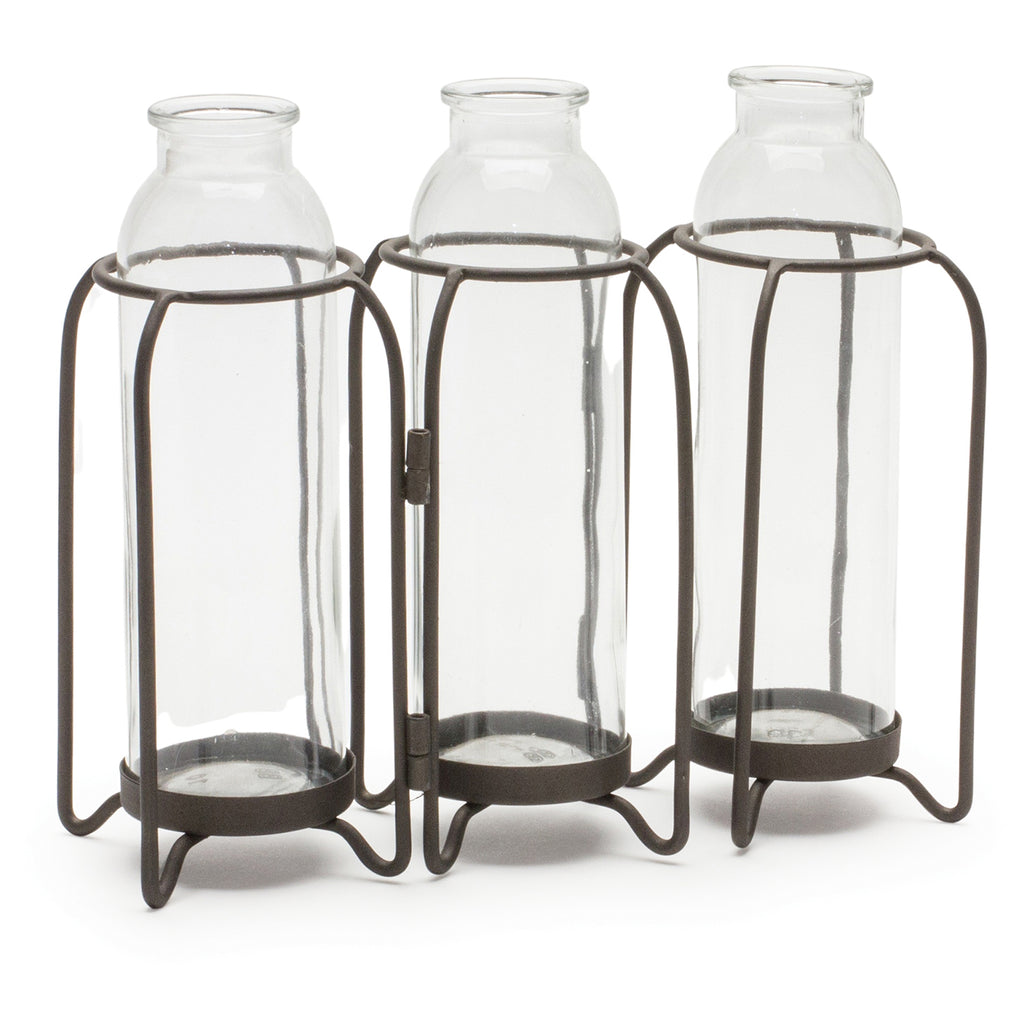 Bottle Vases in Iron Holder