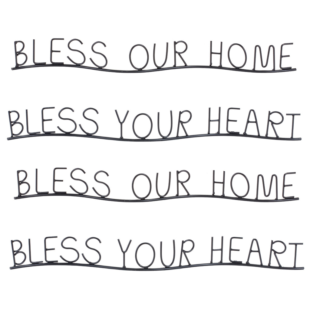 Welcome your guests in style with this beautiful Welcome Sentiment Decor. Featuring two assorted designs, the sentiments include "Bless our Home" and "Bless your Heart". The classic black finish paired with the modern design is the perfect combination to create a stunning display. The quality metal composition is sure to last for seasons to come. Display the pieces in your entryway or living room to share the sentiment with all.