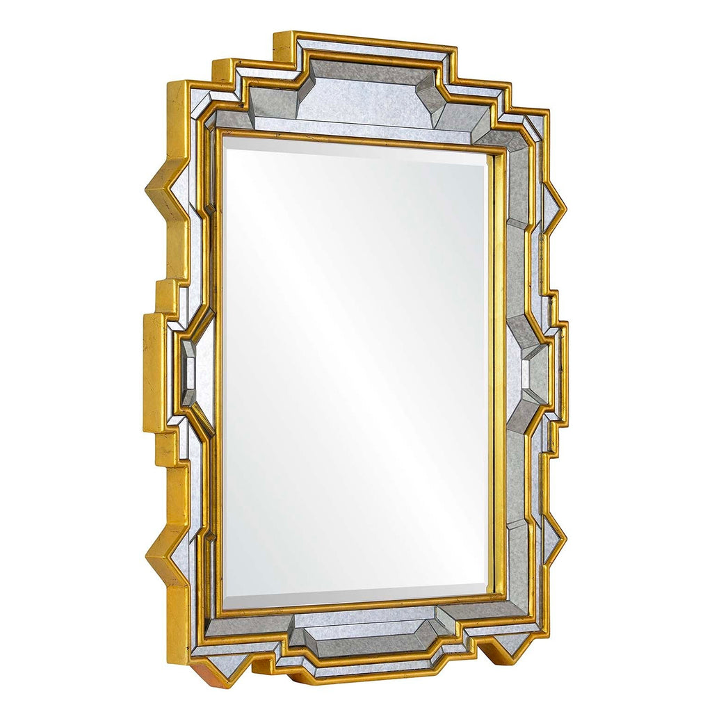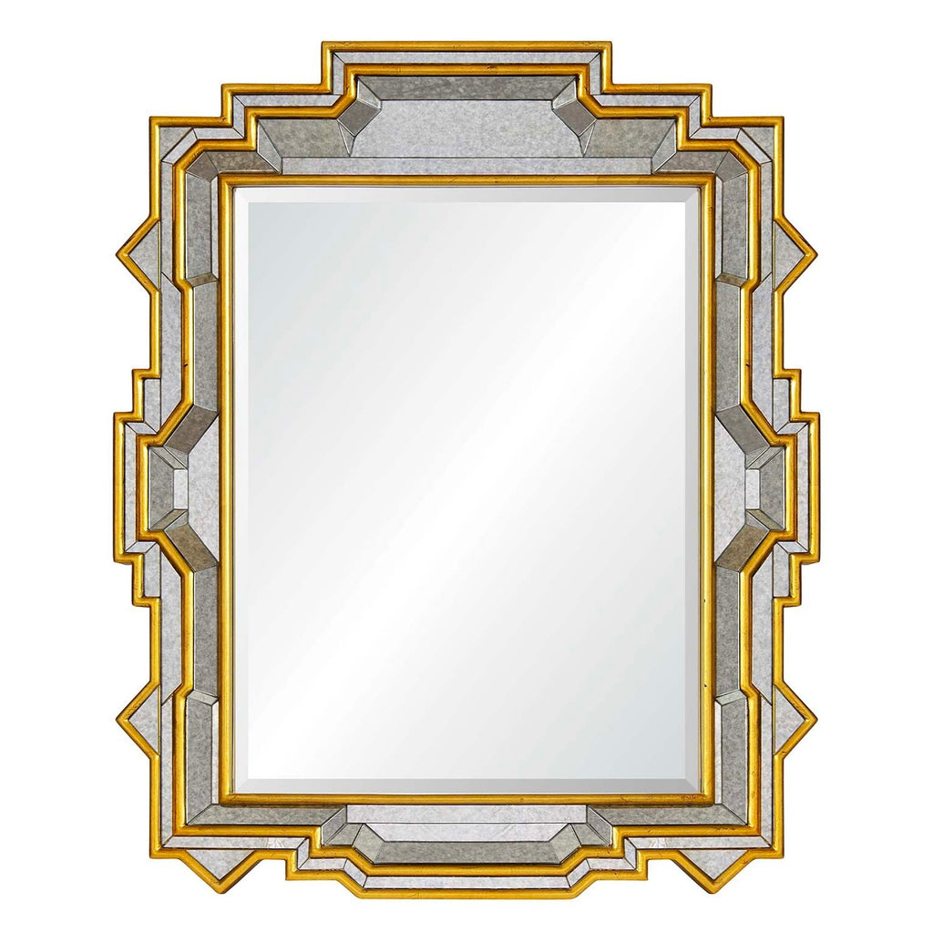 This wall mirror from Mirror Home accents living rooms and dining rooms with elegant texture. Its unique silhouette catches the eye, making it a memorable statement in any space. Designed by Michael S. Smith. Hand carved mirror finished in gold leaf. Beveled center mirror surrounded by hand cut antiqued mirror. Cleat hanging hardware provided. Item can hang horizontally or vertically.