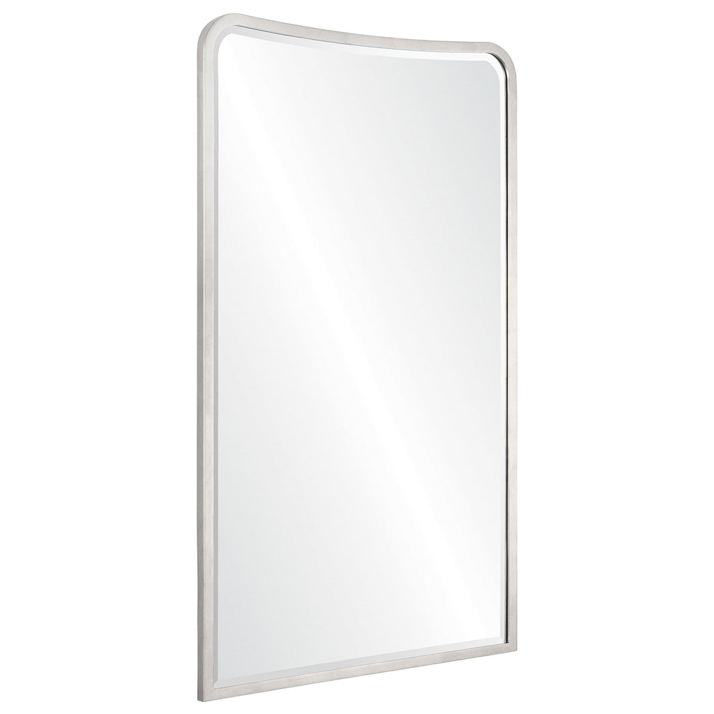 This wall mirror from Mirror Home accents living rooms and dining rooms with elegant texture. Its unique silhouette catches the eye, making it a memorable statement in any space. Hand welded iron mirror finished in antiqued silver leaf or distressed gold leaf. Non-beveled center mirror. Cleat hardware provided.