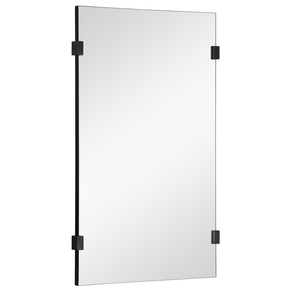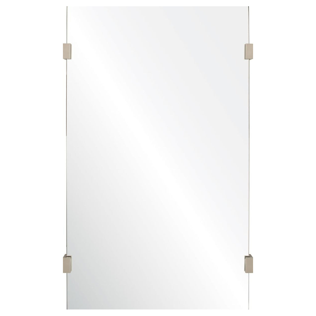 This wall mirror from Mirror Home accents living rooms and dining rooms with elegant texture. Its unique silhouette catches the eye, making it a memorable statement in any space. Rectangle mirror with hand cut and polished stainless steel, burnished brass or black nickel details.