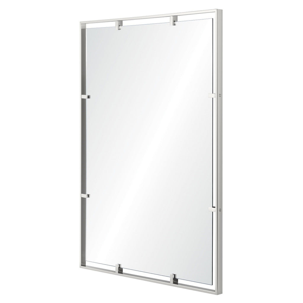 Hand welded stainless steel mirror. Non-beveled center mirror. Cleat hardware provided. Item can hang horizontally or vertically.