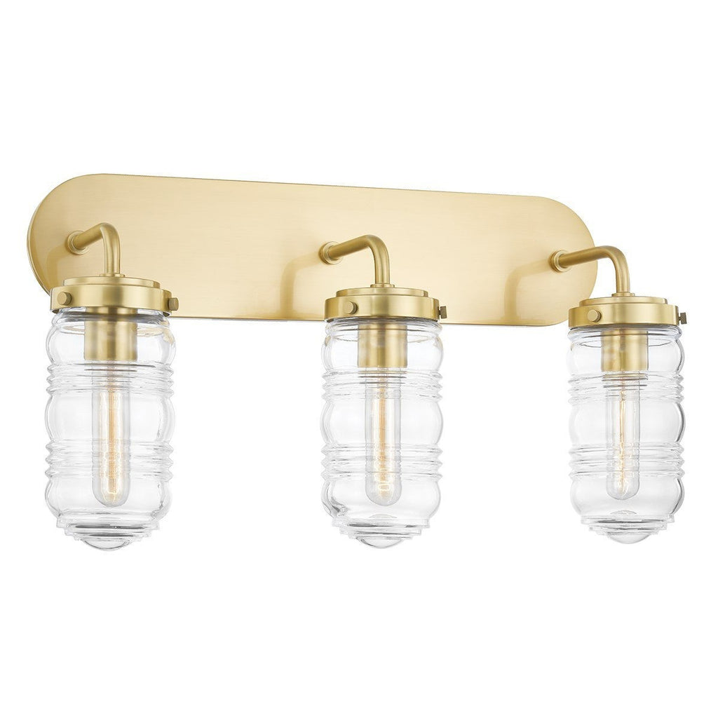 High-quality and exceedingly creative, Mitzi delivers a semi-nostalgic classic lighting collection with streamlined contemporary elements that instantly upgrade your space. From AM to PM, find your best light with vanity lights by Mitzi in your master bath or guest bathroom, serving daily inspiration with flawless form and function. An incandescent bulb is on display inside a glass jar shade in the chic Mitzi Clara 3-light bath vanity light. Metal accents at the bulb base, arm, canopy and backplate add a touch of shine. Bath and vanity fixtures feature a beehive-inspired, ribbed glass shade.
