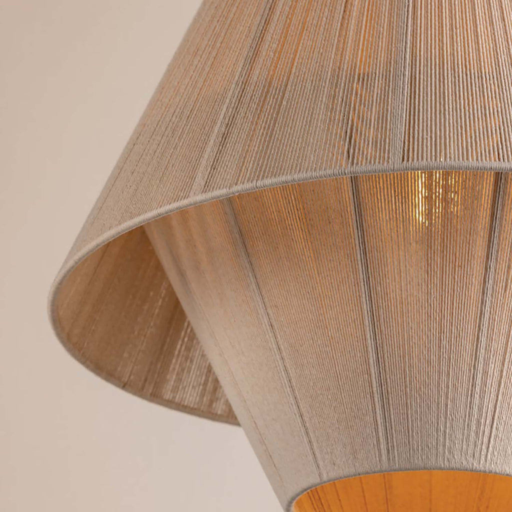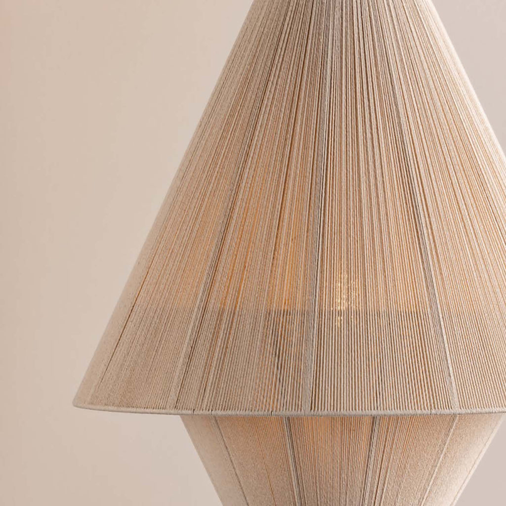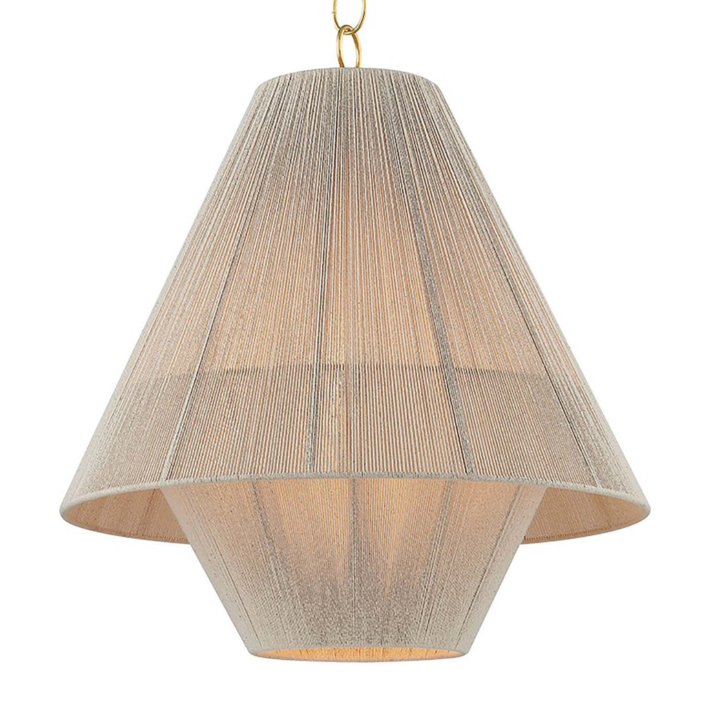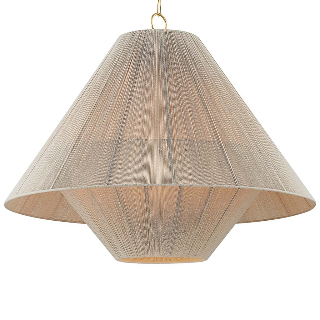 To create the casual elegance of the Mitzi Eleanor pendant, two light and airy string shades are nested around a central light source. The overlapping of the conical shades creates a subtle moire effect, adding depth to the dynamic silhouette. Suspended by a simple, yet refined Aged Brass chain, Eleanor is perfect over a dining table or in a bedroom.