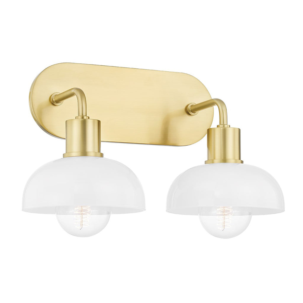 High-quality and exceedingly creative, Mitzi delivers a semi-nostalgic classic lighting collection with streamlined contemporary elements that instantly upgrade your space. From AM to PM, find your best light with vanity lights by Mitzi in your master bath or guest bathroom, serving daily inspiration with flawless form and function. Globe bulbs peek from beneath dome glass shades to give the sleek Mitzi Kyla 2-light bath vanity fixture a vintage vibe. Light shines through the clear glass shade of the sconce, while the opal glossy shade of the bath and vanity fixture gives off a softer glow.