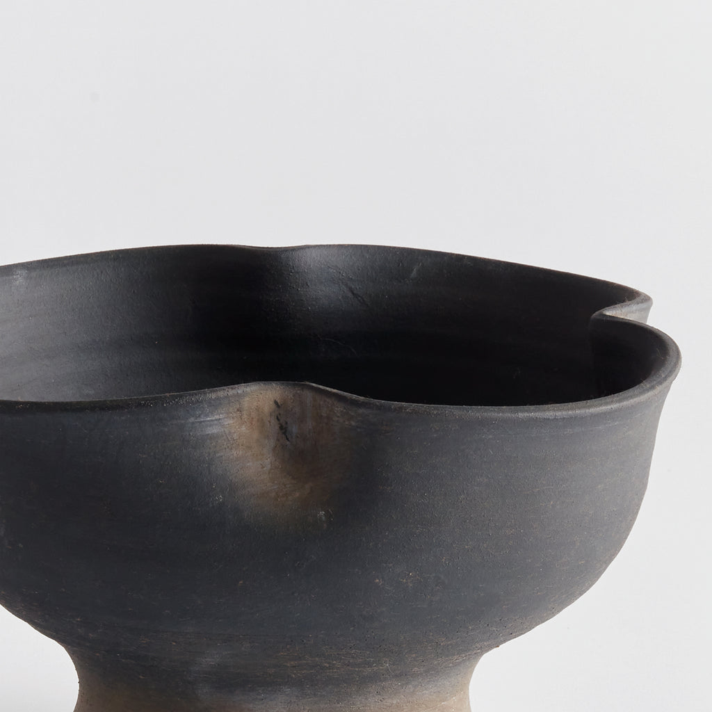 This footed bowl is hand thrown and formed by an artisans touch. But the real story is in the glaze. The dynamic texture is referred to as a 'cold finish', when the piece is not glazed a second time, creating a distinctive hand rubbed, matte finish. Simply stunning.